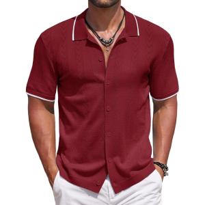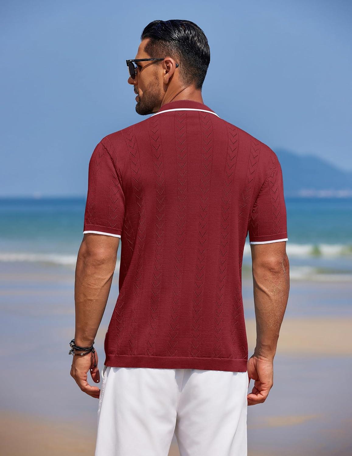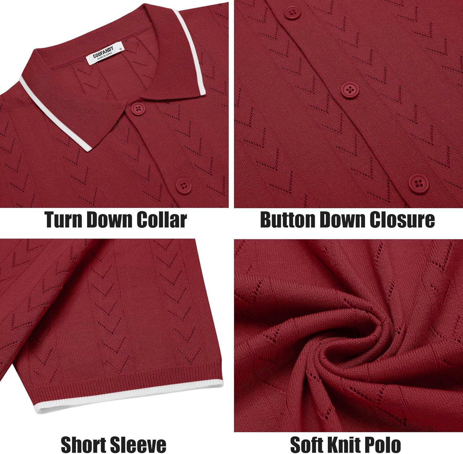 COOFANDY Mens Knit Polo Shirts Button Down Short Sleeve Shirt Summer Casual Beach Vacation Tops(Wine Red)