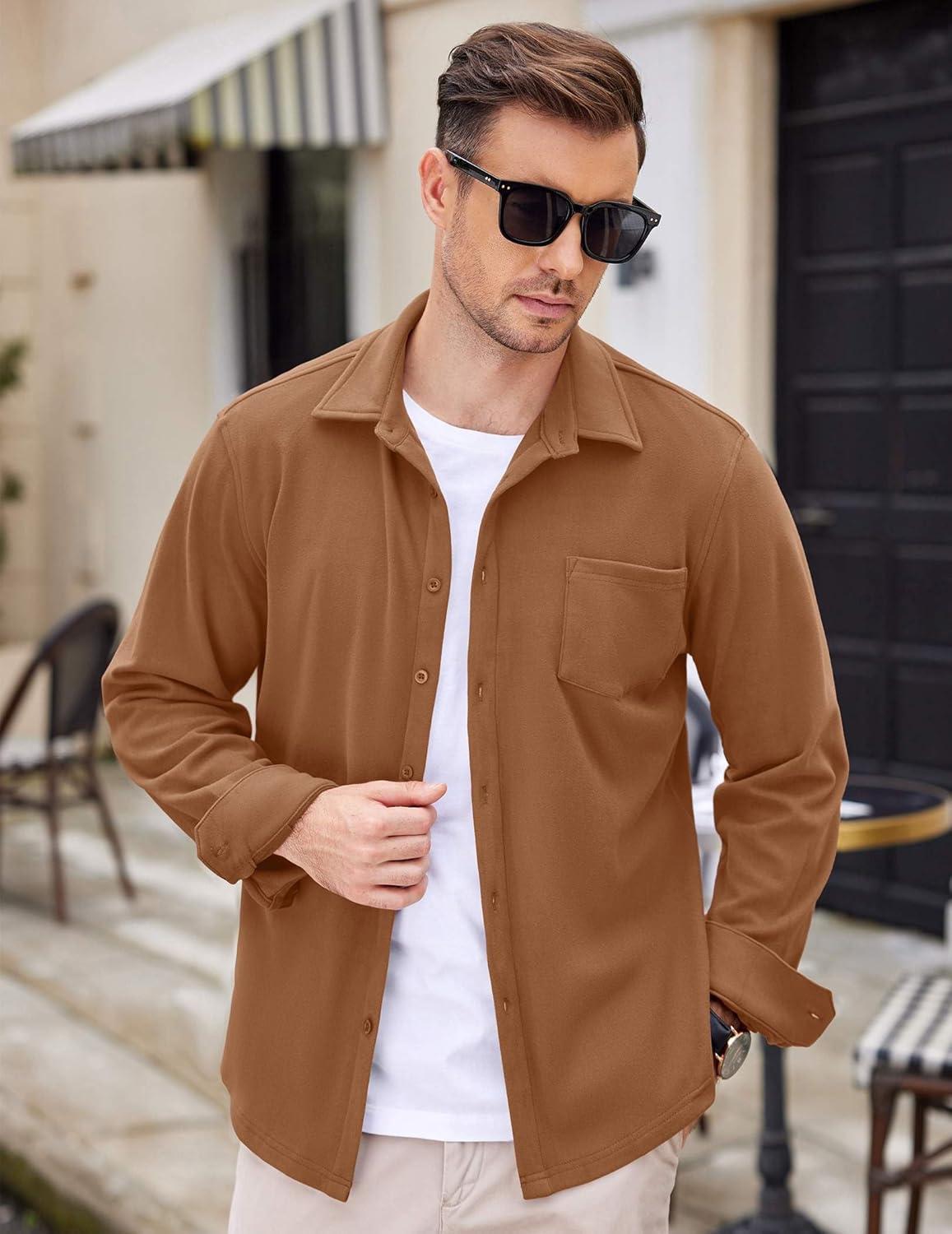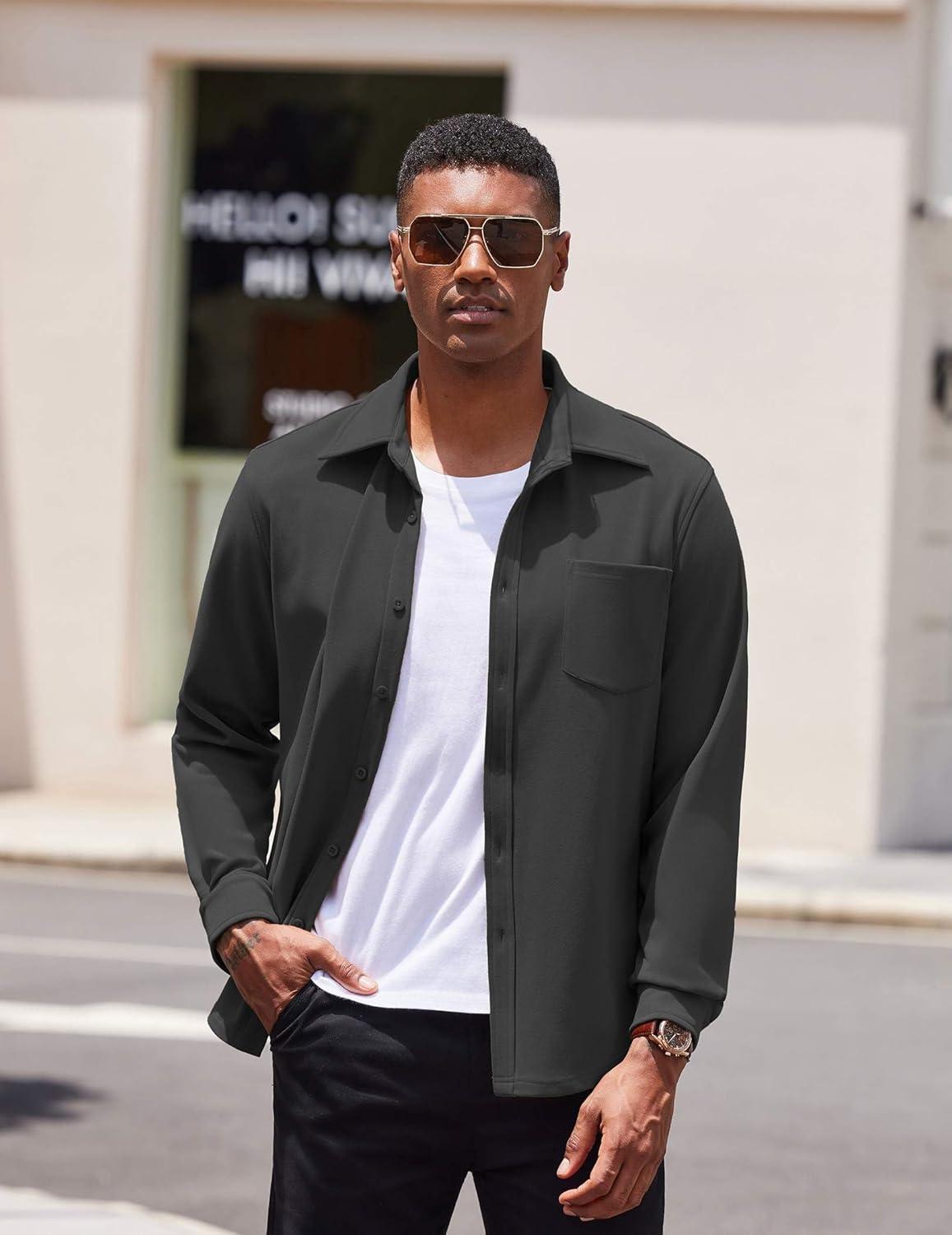 COOFANDY Mens Lightweight Button Down Shirt Jacket Casual Shacket Overshirt