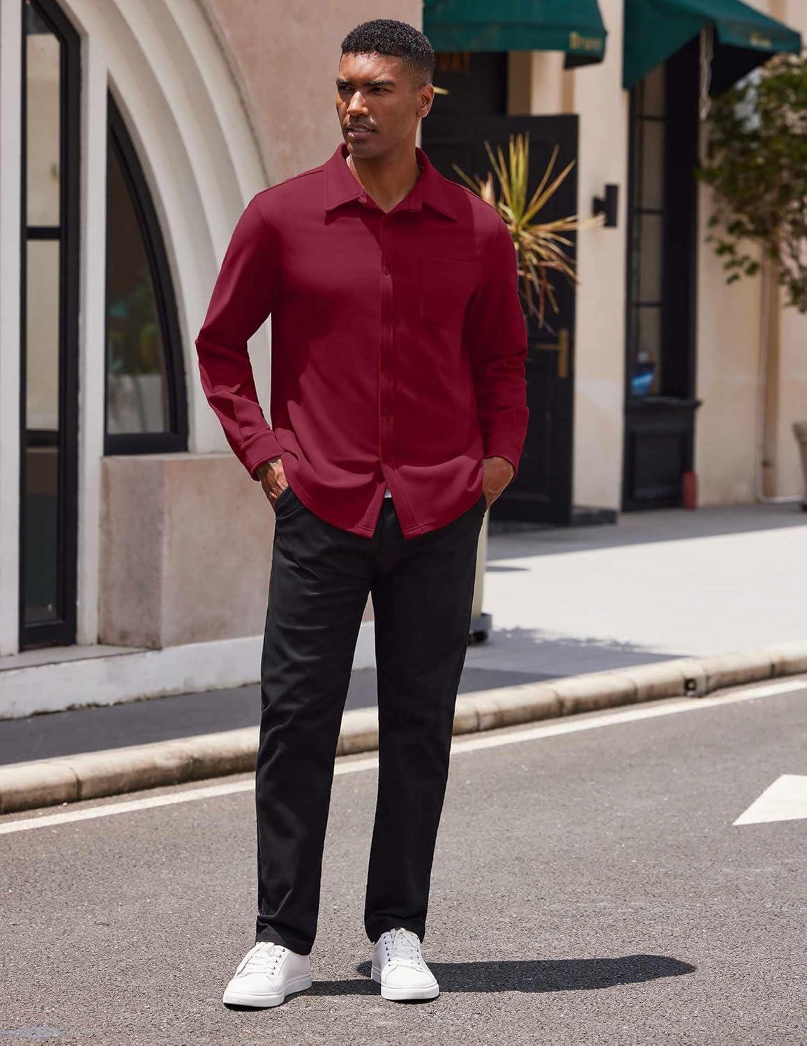 COOFANDY Mens Lightweight Button Down Shirt Jacket Casual Shacket Overshirt(Dark Red)