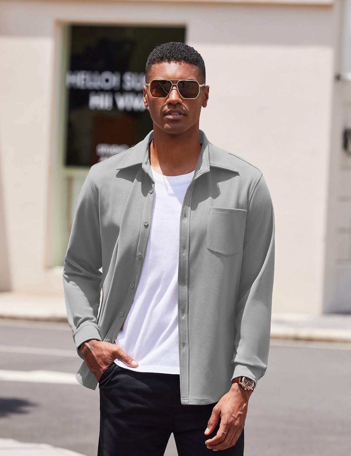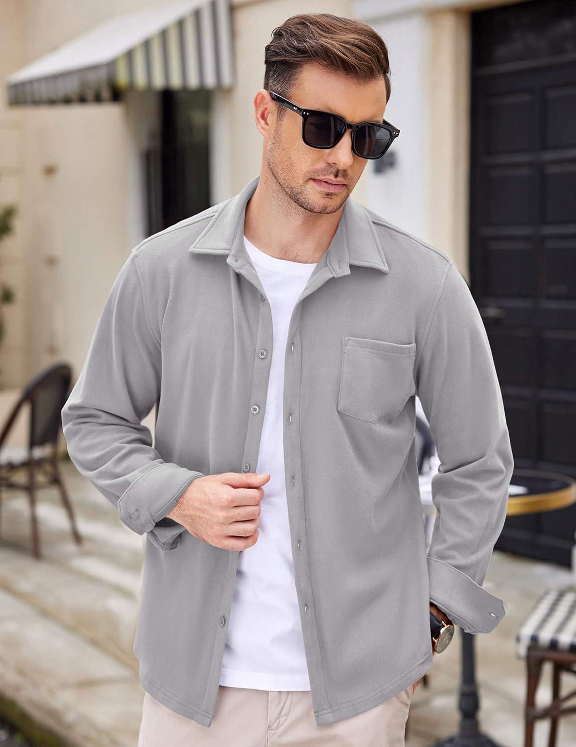 COOFANDY Mens Lightweight Button Down Shirt Jacket Casual Shacket Overshirt(Light Grey)