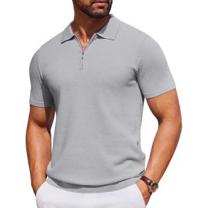 COOFANDY Mens Casual Quarter Zipper Knit Polo Shirts Short Sleeve Summer Beach Shirt Textured Jersey Tops(Light Grey)