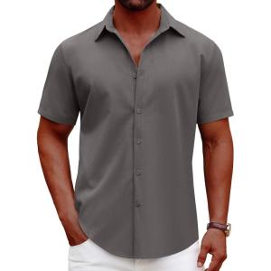 COOFANDY Mens Casual Short Sleeve Button Down Shirts Summer Untucked Wrinkle Free Shirts(Dark Grey)