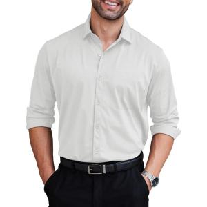 COOFANDY Mens Dress Shirts Long Sleeve Wrinkle Free Shirt Textured Business Casual Button Down Shirt(White)