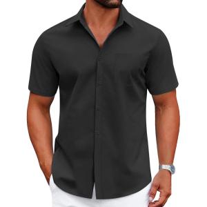 COOFANDY Mens Dress Shirts Short Sleeve Business Casual Shirts Regular Fit Casual Button Down Untucked Shirts(A-black)
