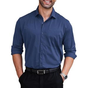 COOFANDY Mens Dress Shirt Long Sleeve Button Down Shirts Business Casual Wrinkle Free Shirts with Pocket(Navy Blue)