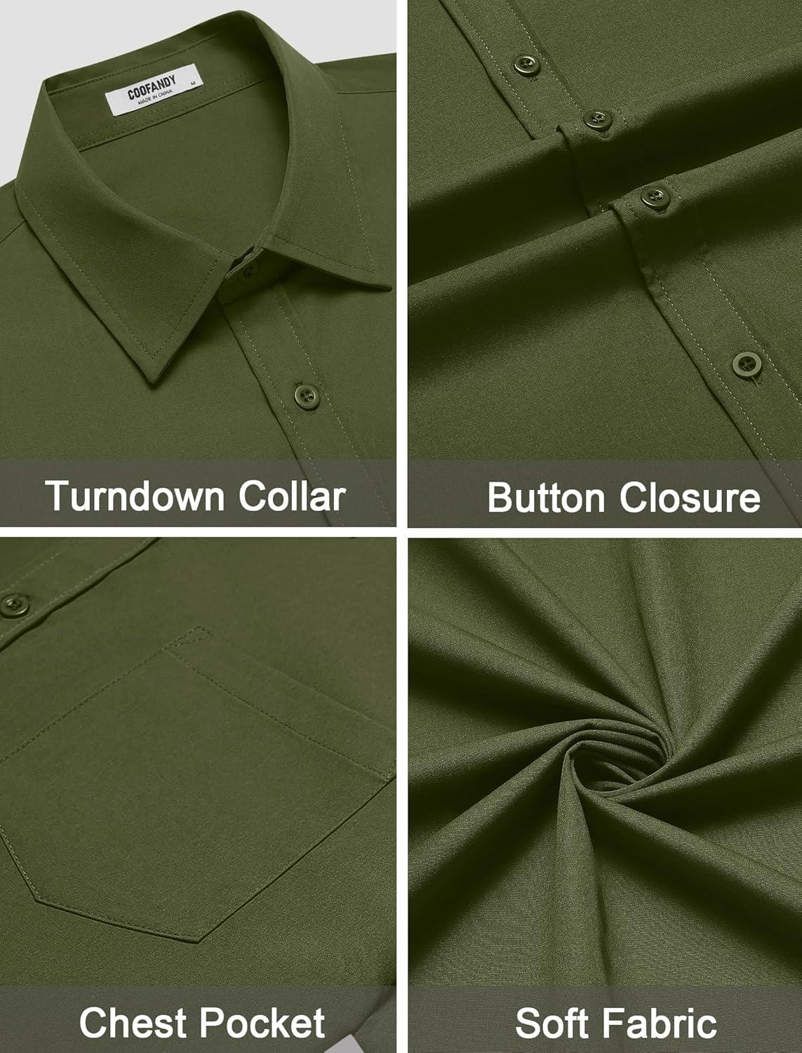 COOFANDY Mens Dress Shirts Wrinkle Free Long Sleeve Button Down Shirts Formal Business Shirt(Army Green)