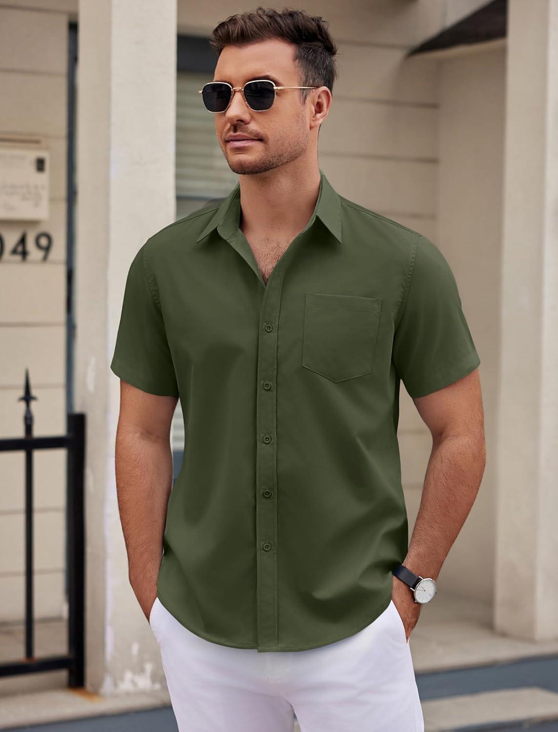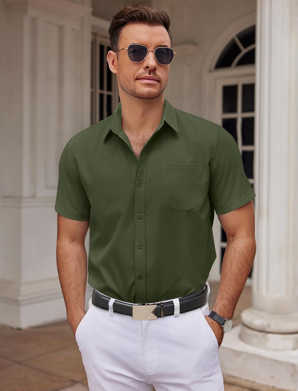 COOFANDY Mens Dress Shirts Short Sleeve Regular Fit Lightweight Untucked Button Down Shirt(Army Green)