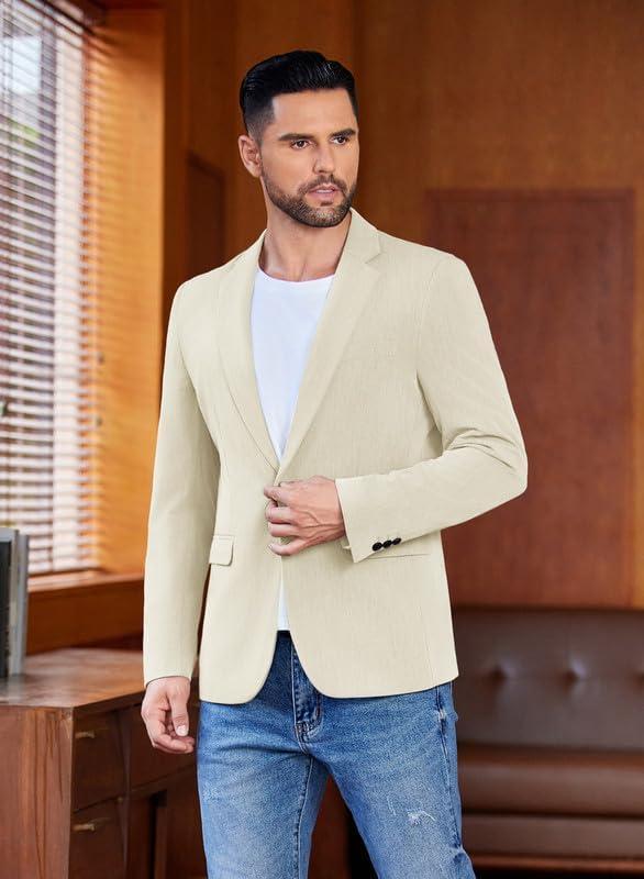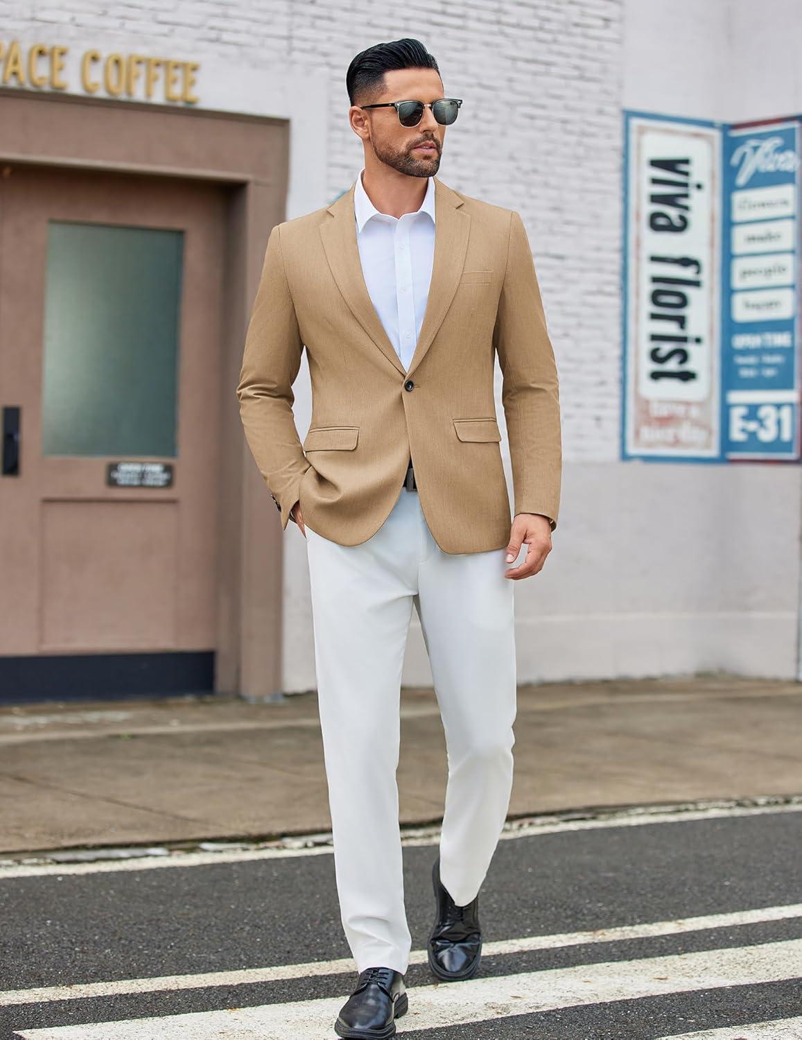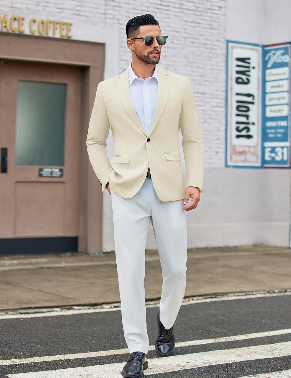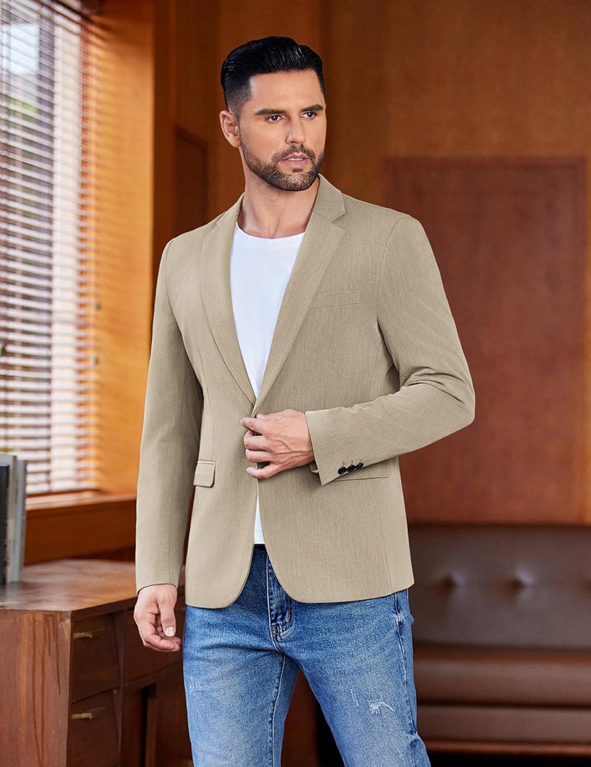 COOFANDY Men’s Casual Blazer Slim Fit Sport Coat Suit Jacket Lightweight Two Button Blazer Jacket(Beige)