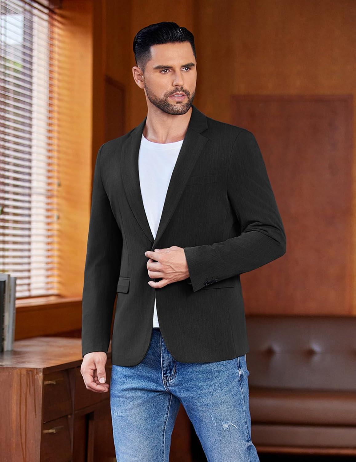 COOFANDY Men’s Casual Blazer Slim Fit Sport Coat Suit Jacket Lightweight Two Button Blazer Jacket(Black)