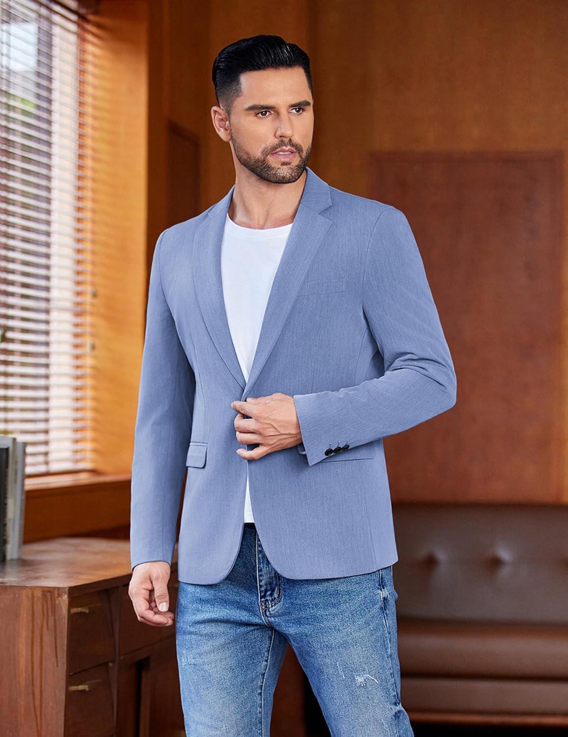 COOFANDY Men’s Casual Blazer One Button Sport Coat Lightweight Business Suit Jacket(Blue)