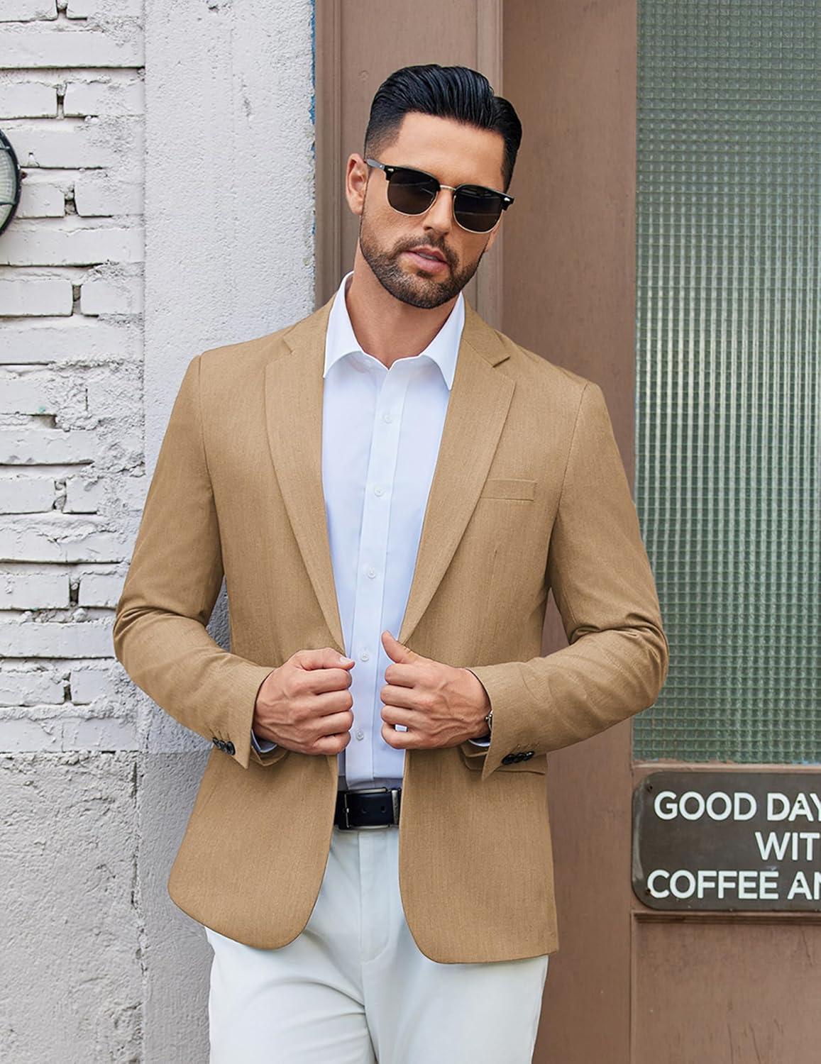 COOFANDY Men’s Casual Blazer Slim Fit Sport Coat Suit Jacket Lightweight Two Button Blazer Jacket(Light Khaki)