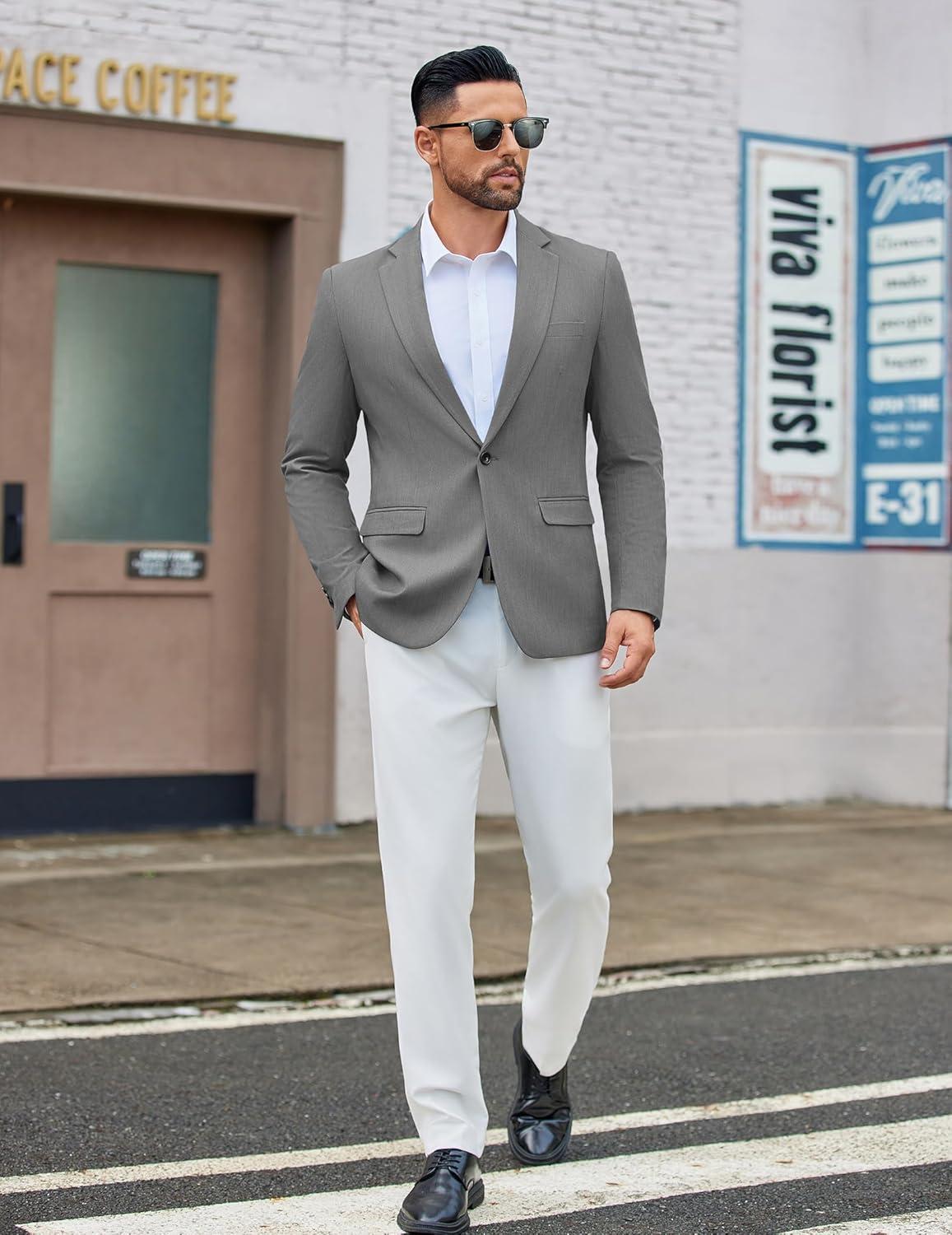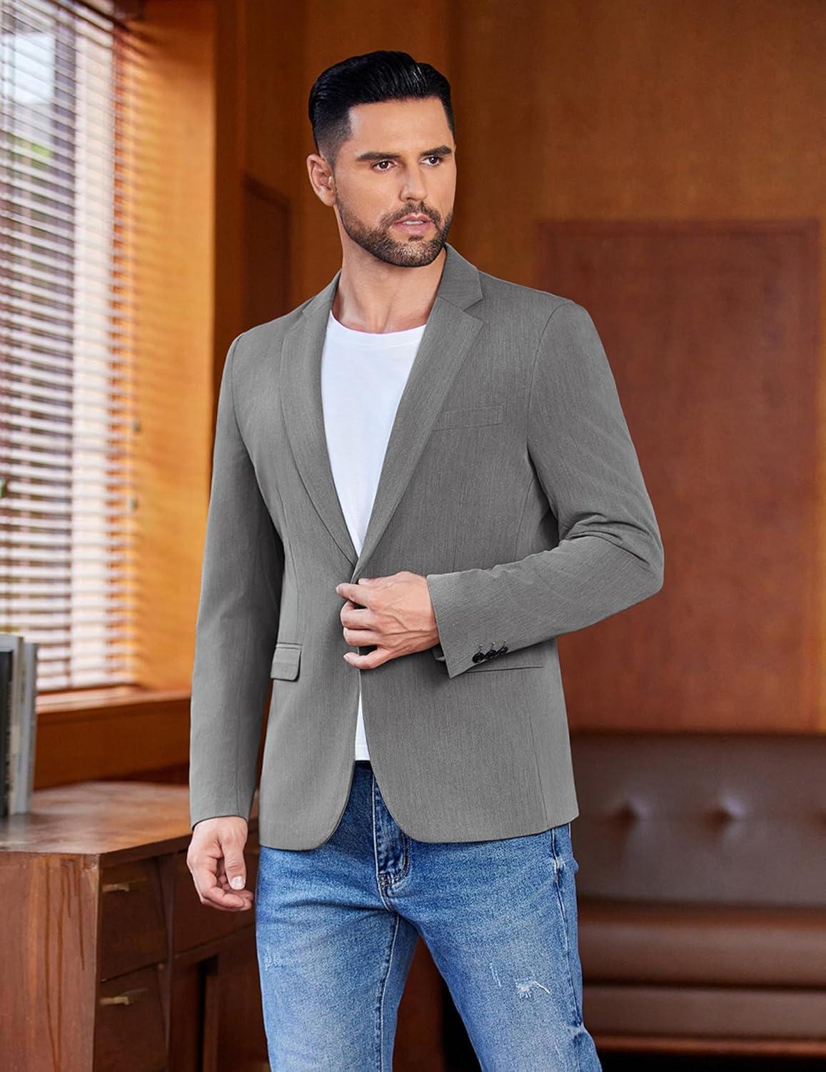 COOFANDY Men’s Casual Blazer Slim Fit Sport Coat Suit Jacket Lightweight Two Button Blazer Jacket(Grey)