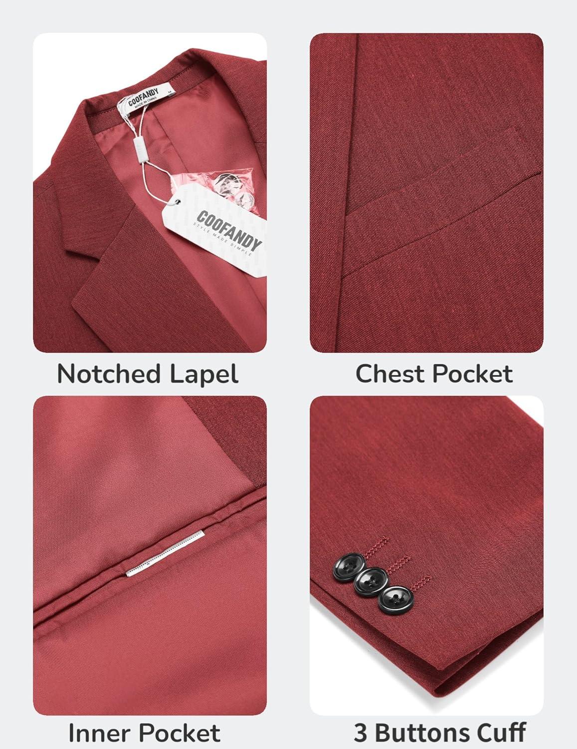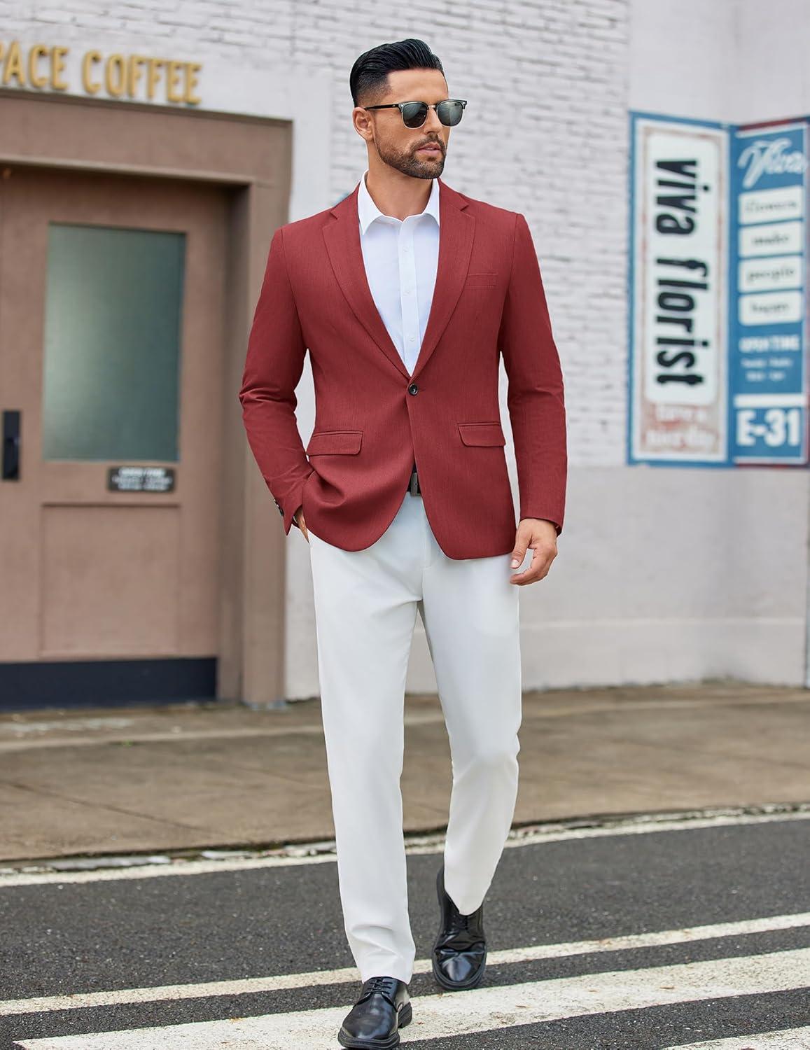 COOFANDY Men’s Casual Blazer Lightweight Unlined Sport Coat Regular Fit Two Button Suit Jacket(Red)