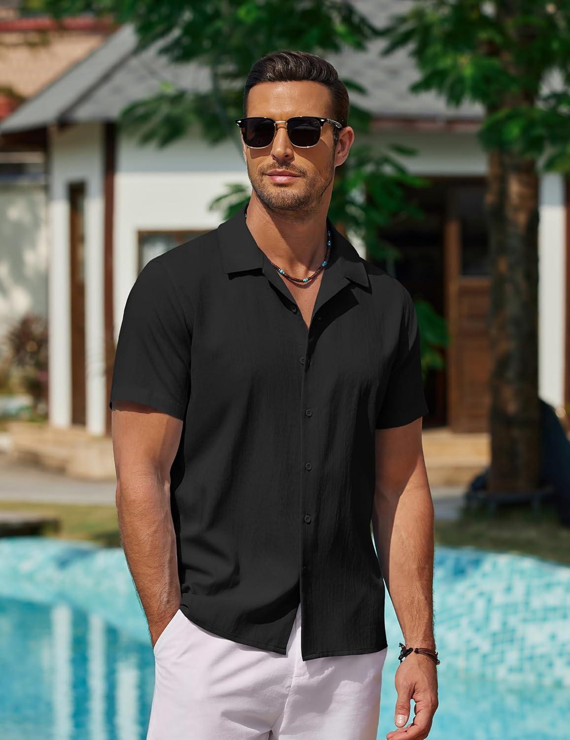 COOFANDY Men’s Casual Button Down Shirts Short Sleeve Wrinkle-Free Summer Beach Wear(Black)