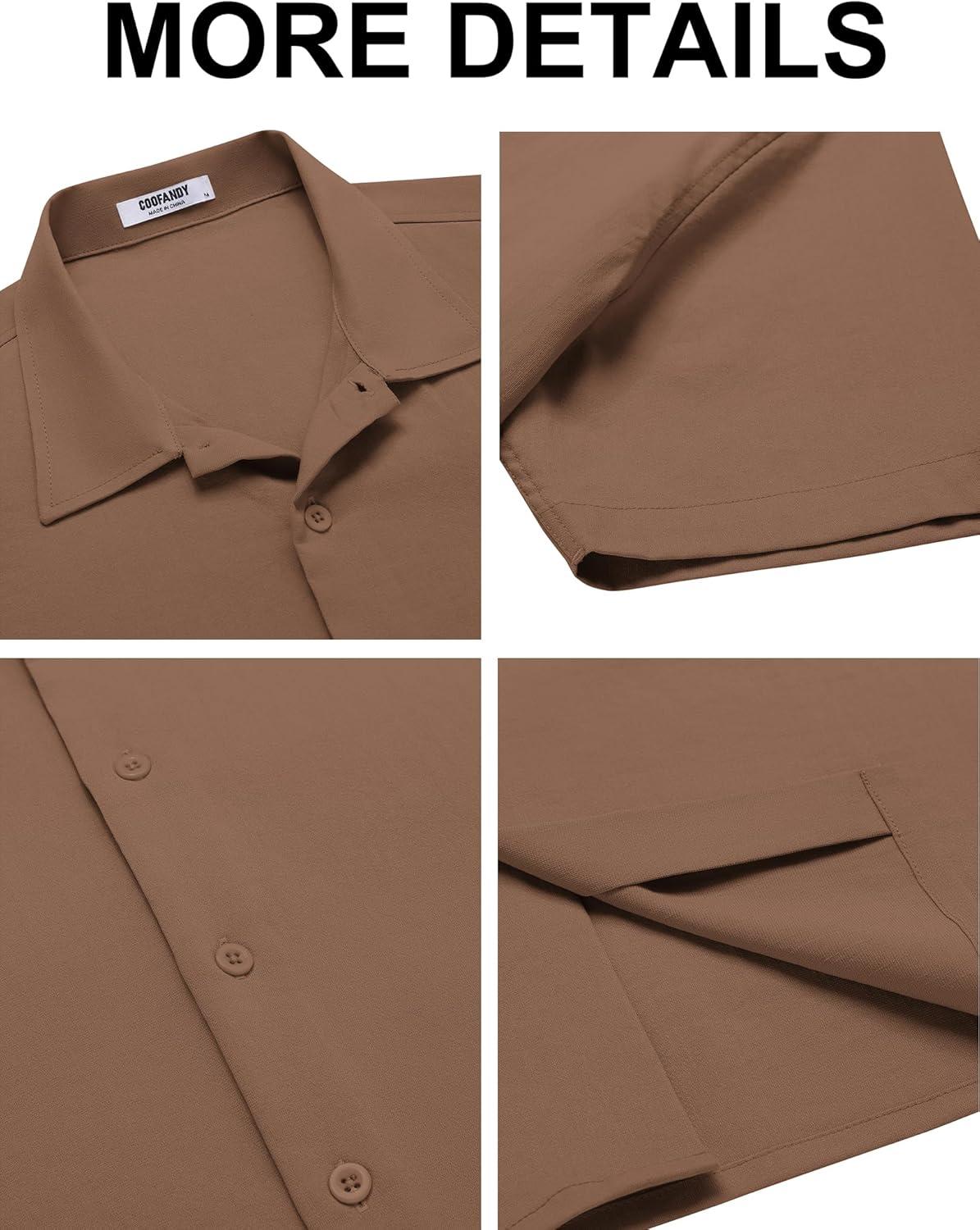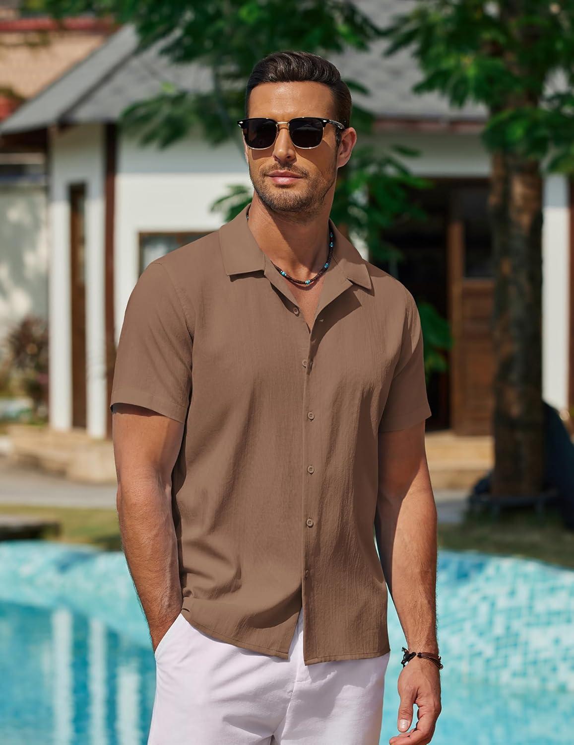 COOFANDY Men’s Casual Button Down Shirts Short Sleeve Wrinkle-Free Summer Beach Wear(Brown)