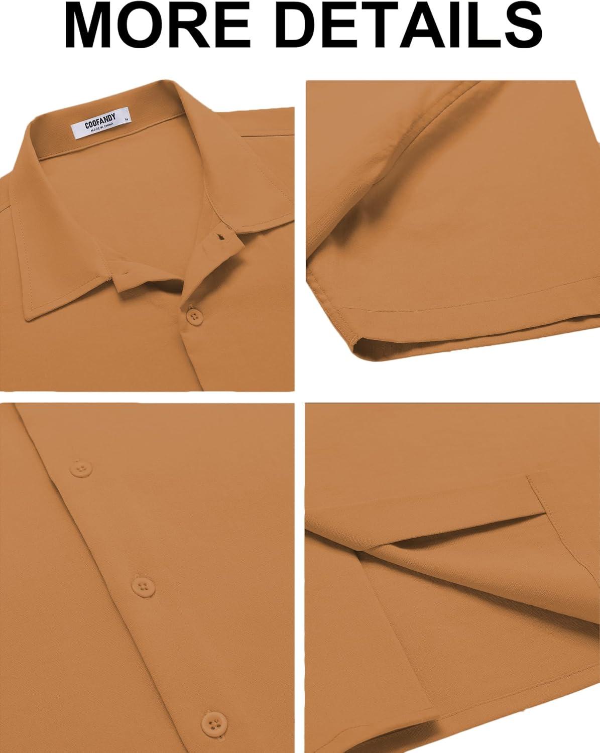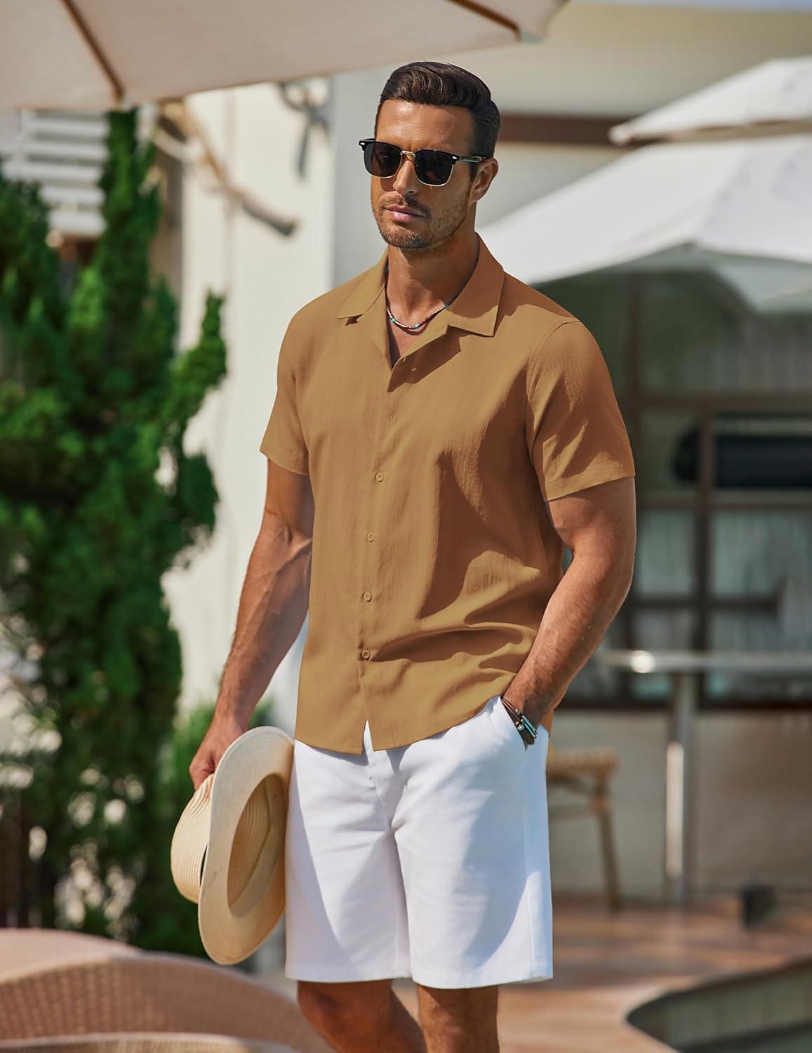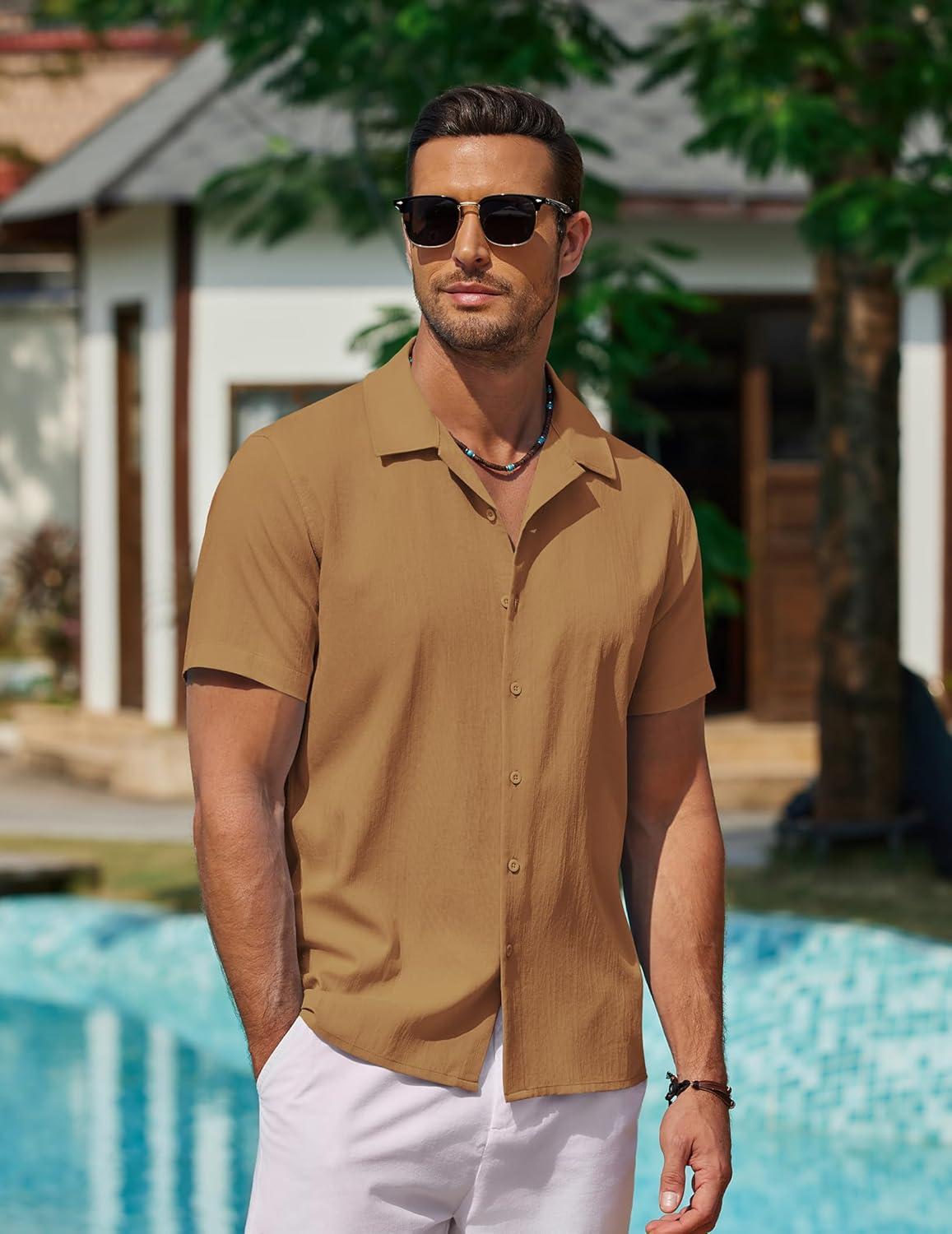 COOFANDY Men’s Casual Button Down Shirts Short Sleeve Wrinkle-Free Summer Beach Wear(Caramel)