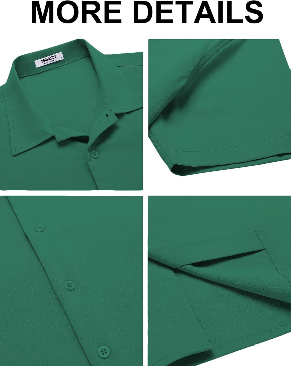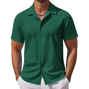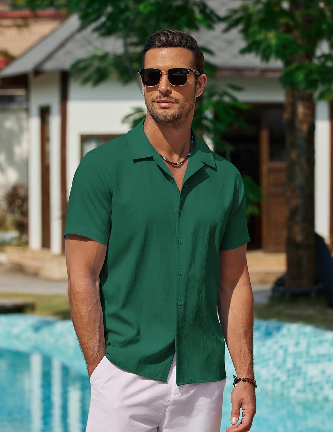 COOFANDY Men’s Casual Button Down Shirts Short Sleeve Wrinkle-Free Summer Beach Wear(Dark Green)