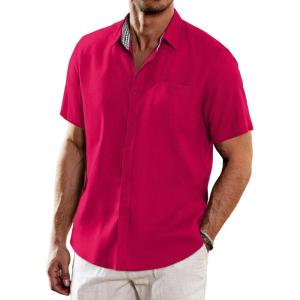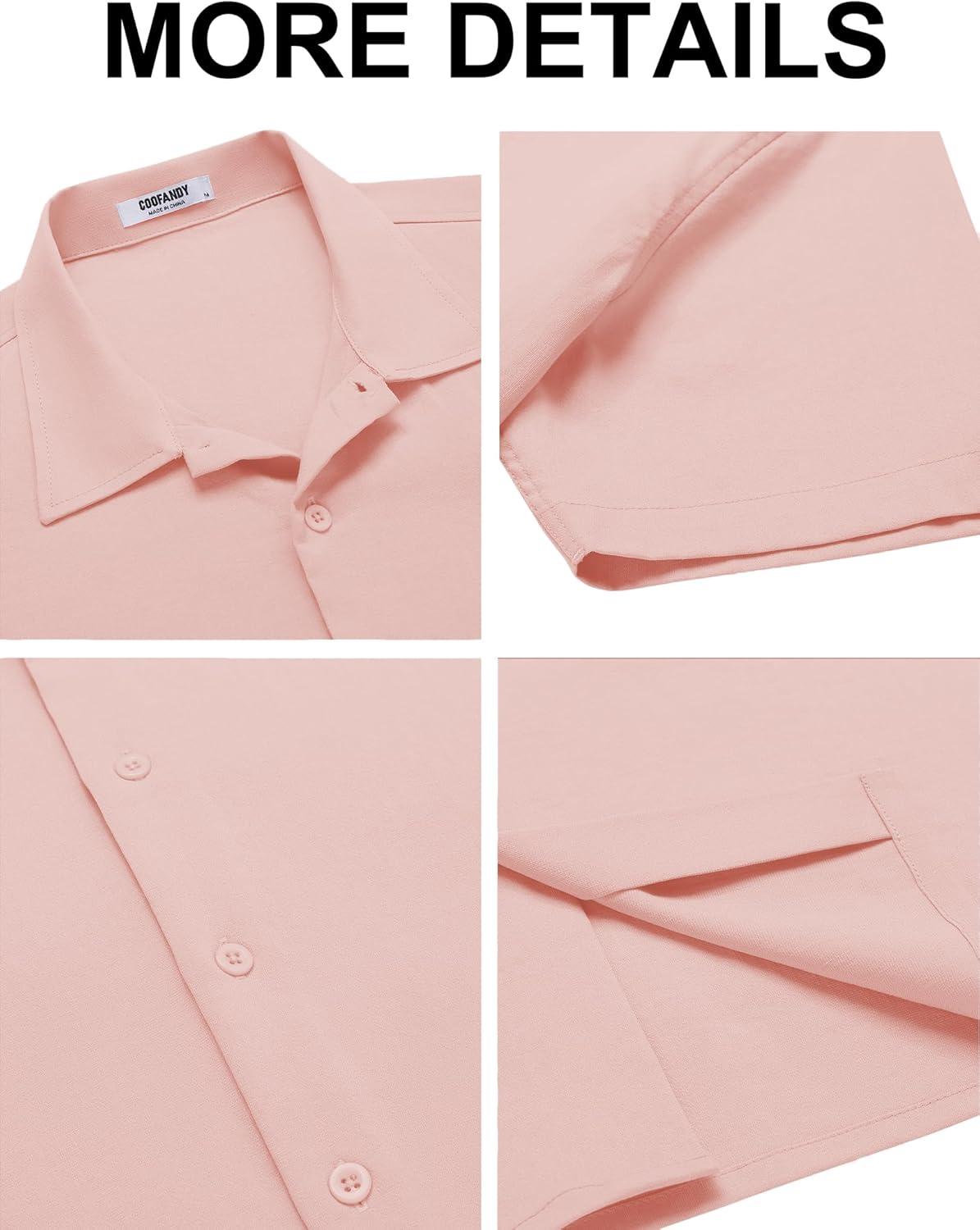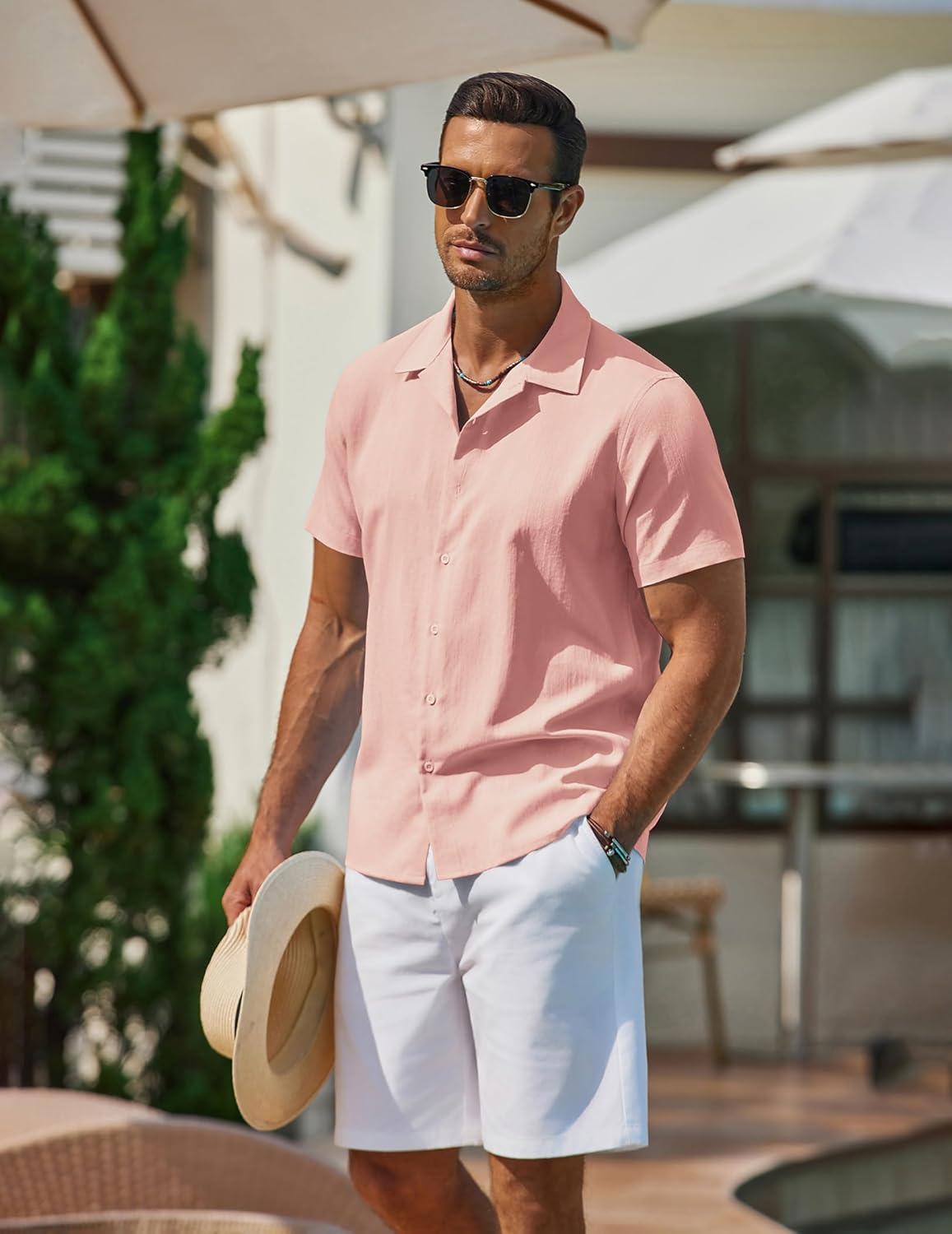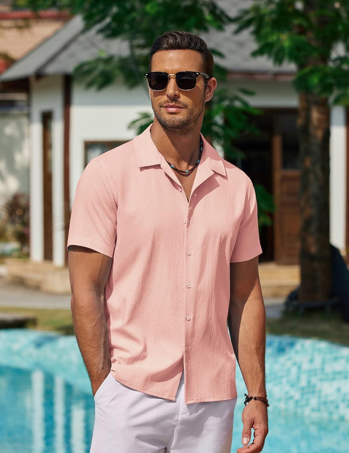 COOFANDY Men’s Casual Button Down Shirts Short Sleeve Wrinkle-Free Summer Beach Wear(Pink)