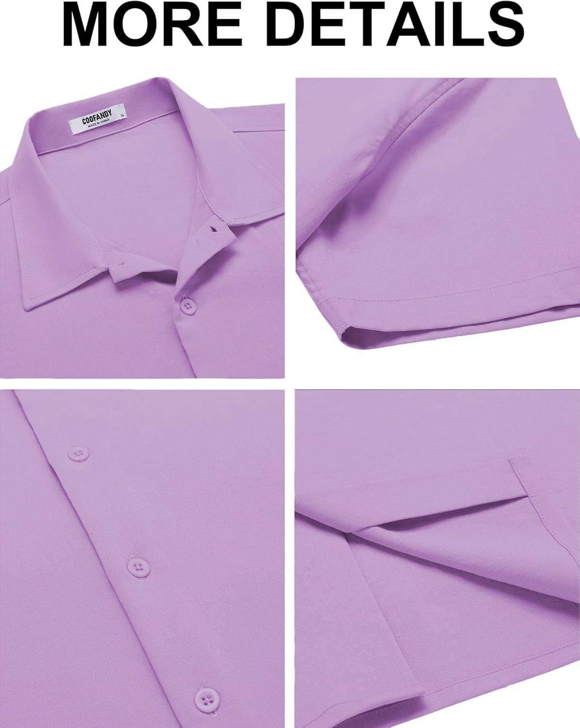 COOFANDY Men’s Casual Button Down Shirts Short Sleeve Wrinkle-Free Summer Beach Wear(Purple)