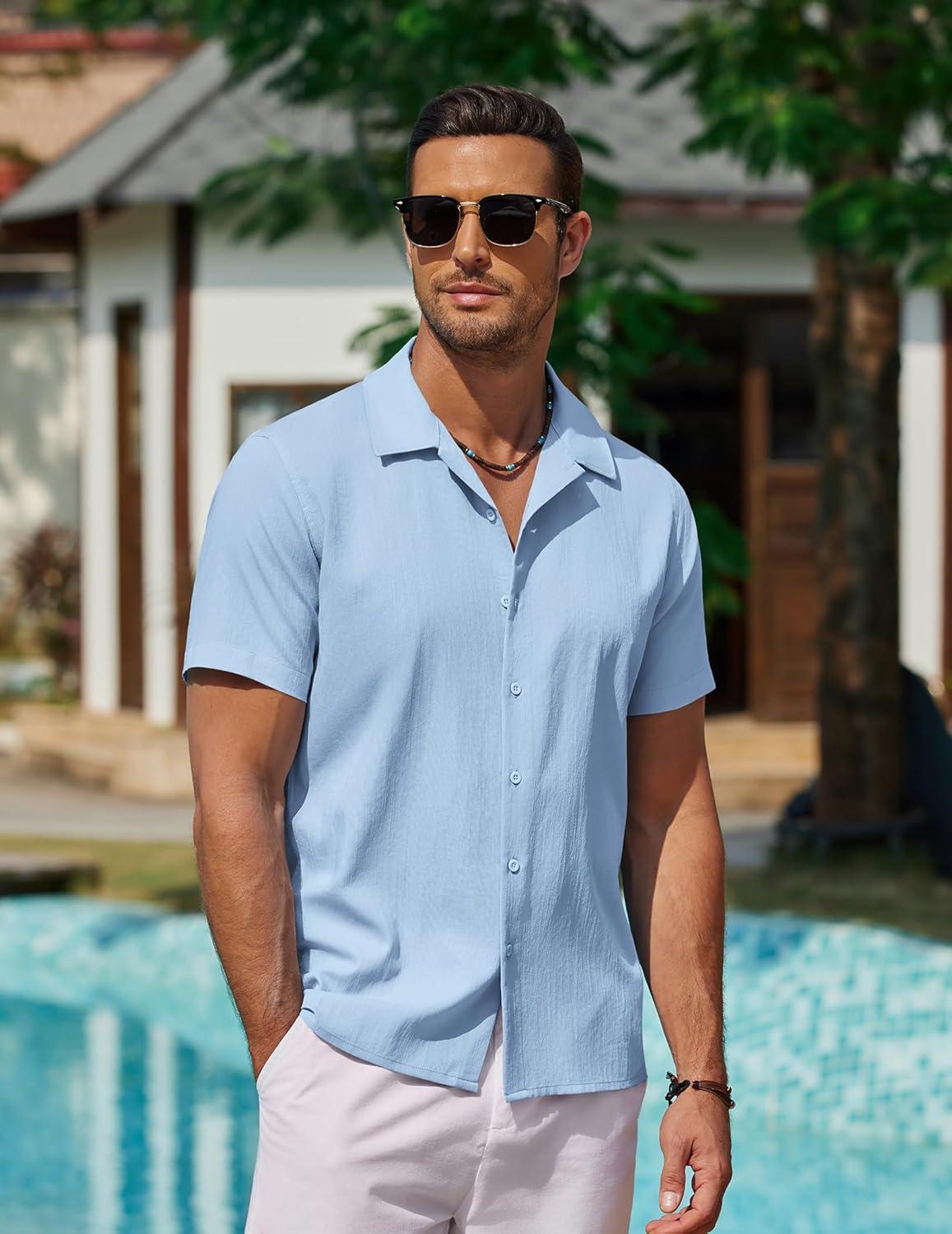 COOFANDY Men’s Casual Button Down Shirts Short Sleeve Wrinkle-Free Summer Beach Wear(Sky Blue)