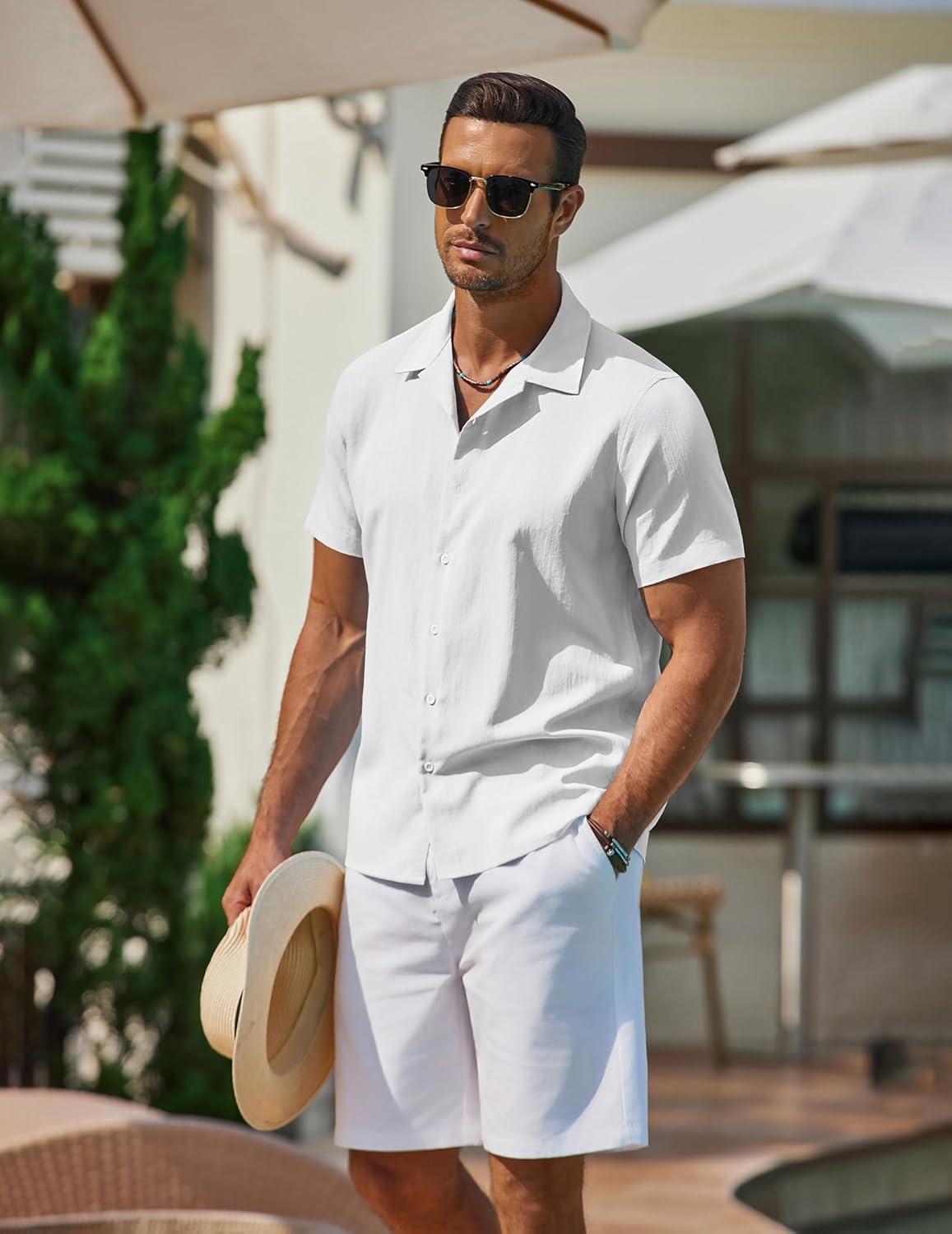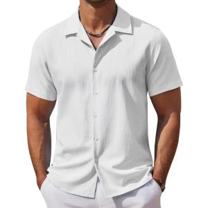 COOFANDY Men’s Casual Button Down Shirts Short Sleeve Wrinkle-Free Summer Beach Wear(White)