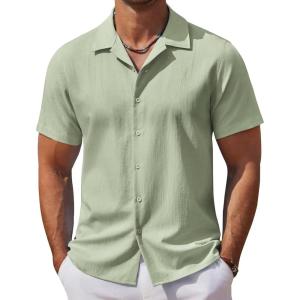 COOFANDY Men’s Casual Button Down Shirts Short Sleeve Wrinkle-Free Summer Beach Wear(Light Green)