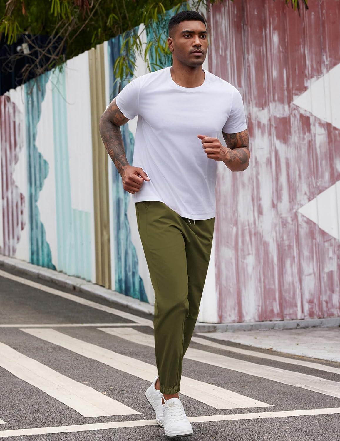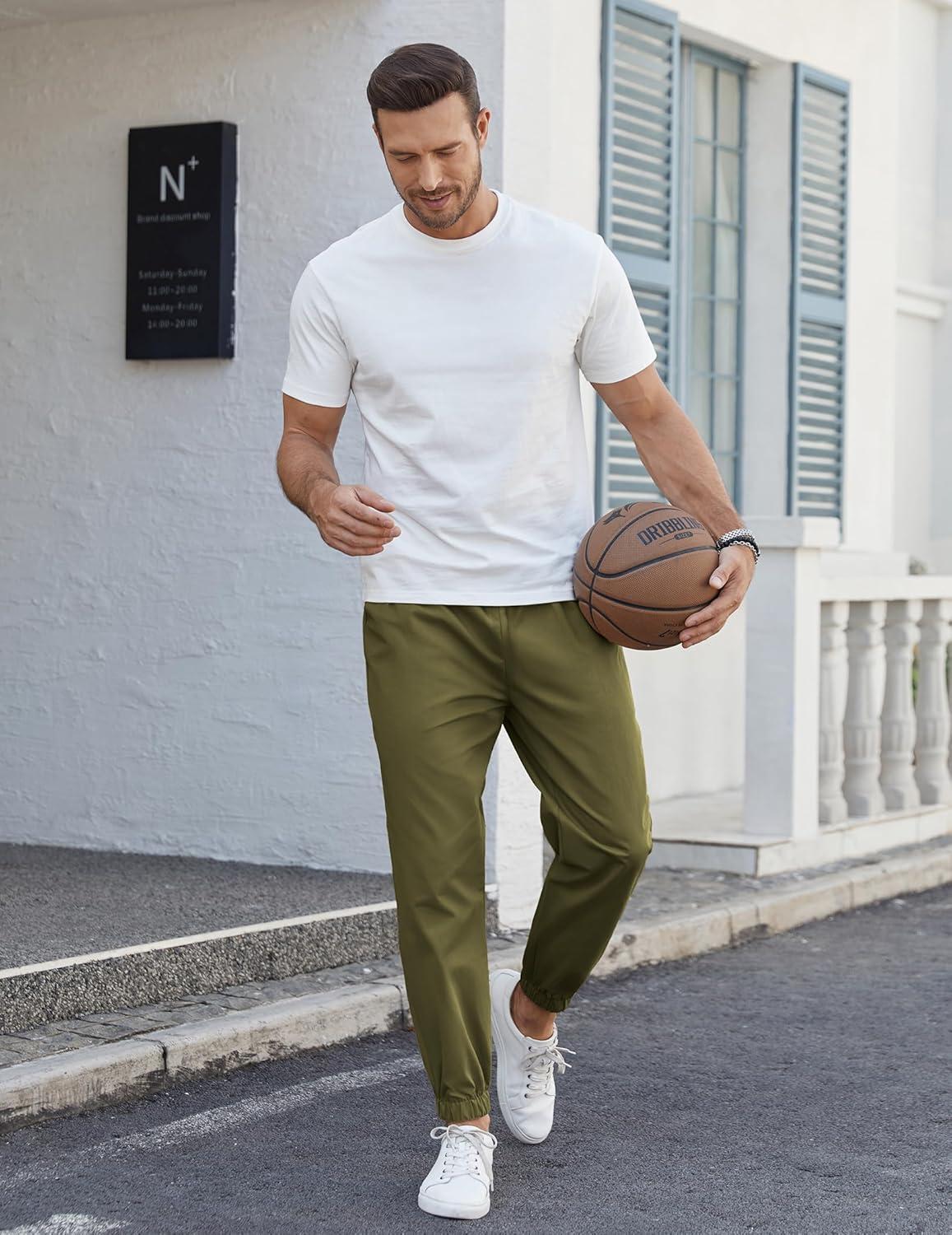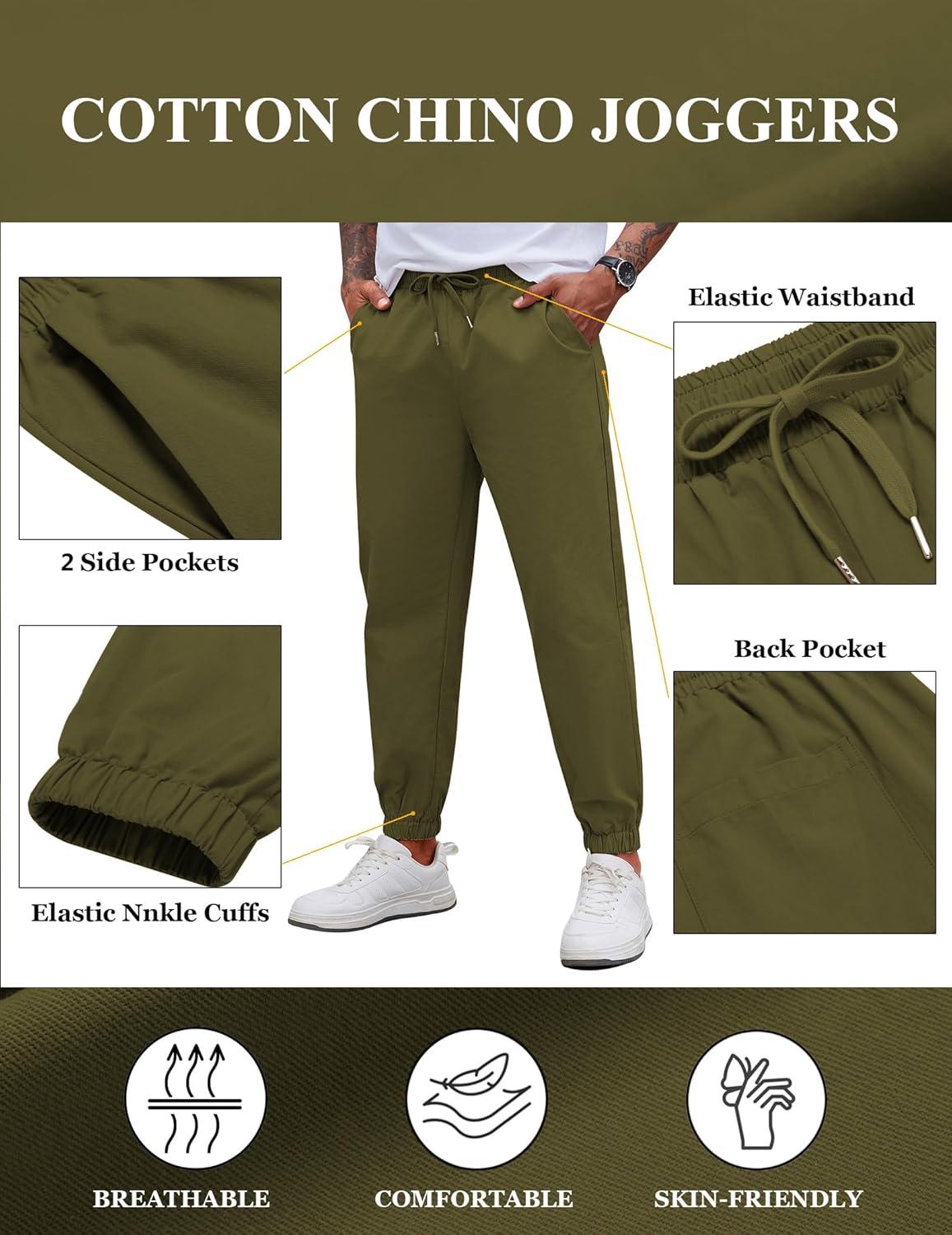 COOFANDY Men’s Casual Joggers Pants Cotton Elastic Waist Drawstring Chino Pants Hiking Outdoor Track Sweatpants(Army Green)