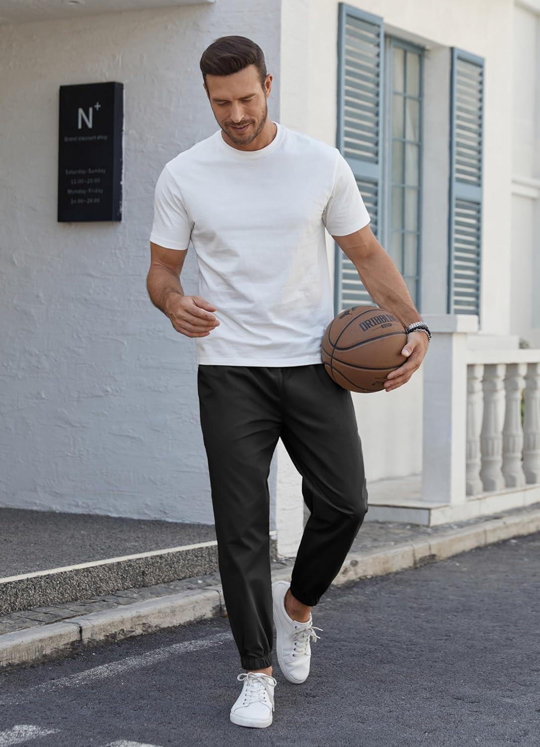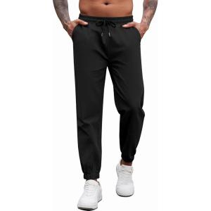 COOFANDY Men’s Casual Joggers Pants Cotton Elastic Waist Drawstring Chino Pants Hiking Outdoor Track Sweatpants(Black)