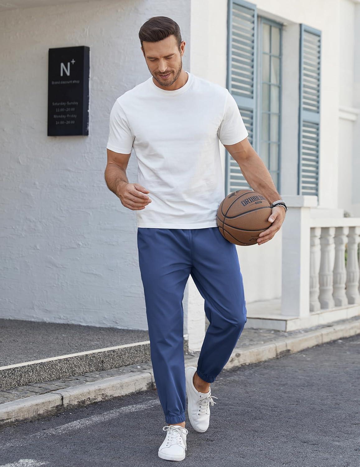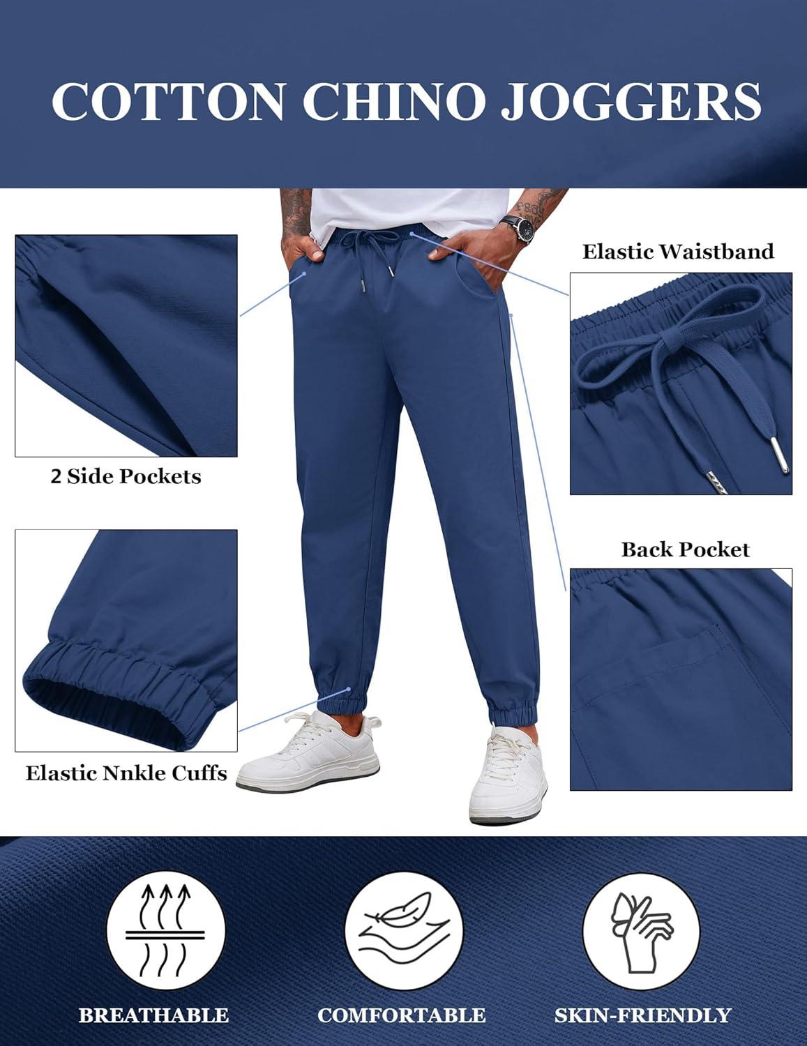 COOFANDY Men’s Casual Joggers Pants Cotton Elastic Waist Drawstring Chino Pants Hiking Outdoor Track Sweatpants(Blue)
