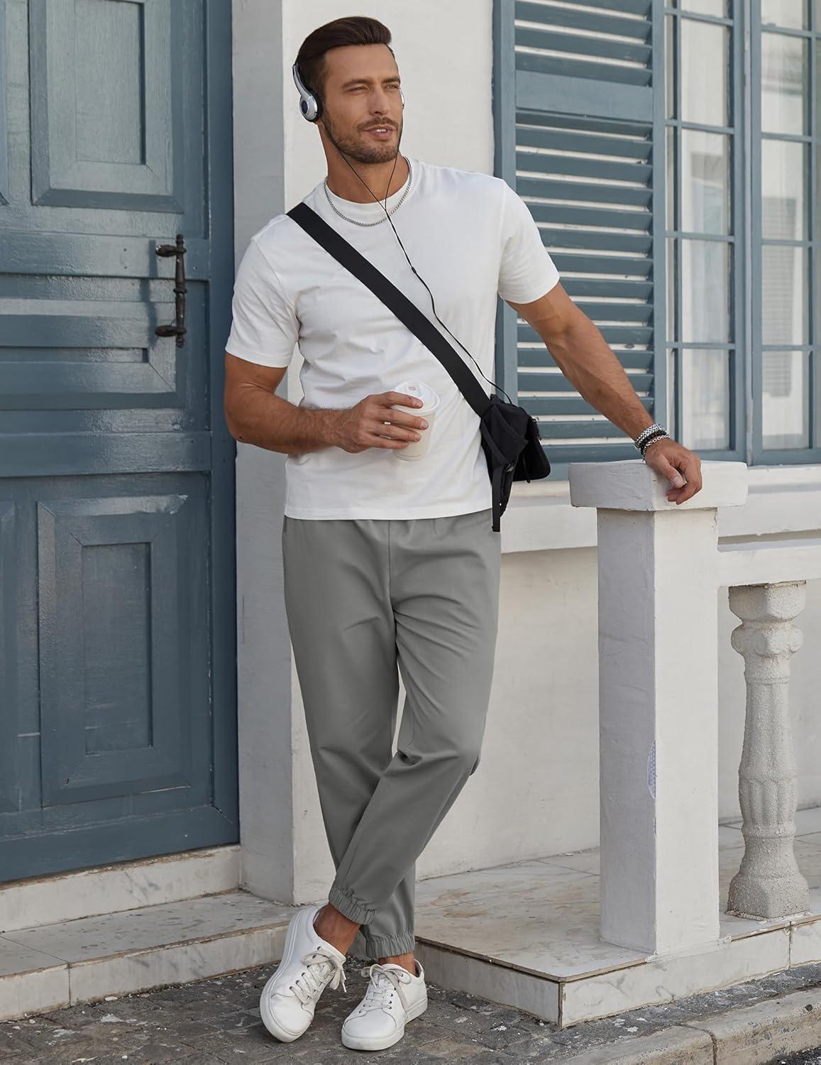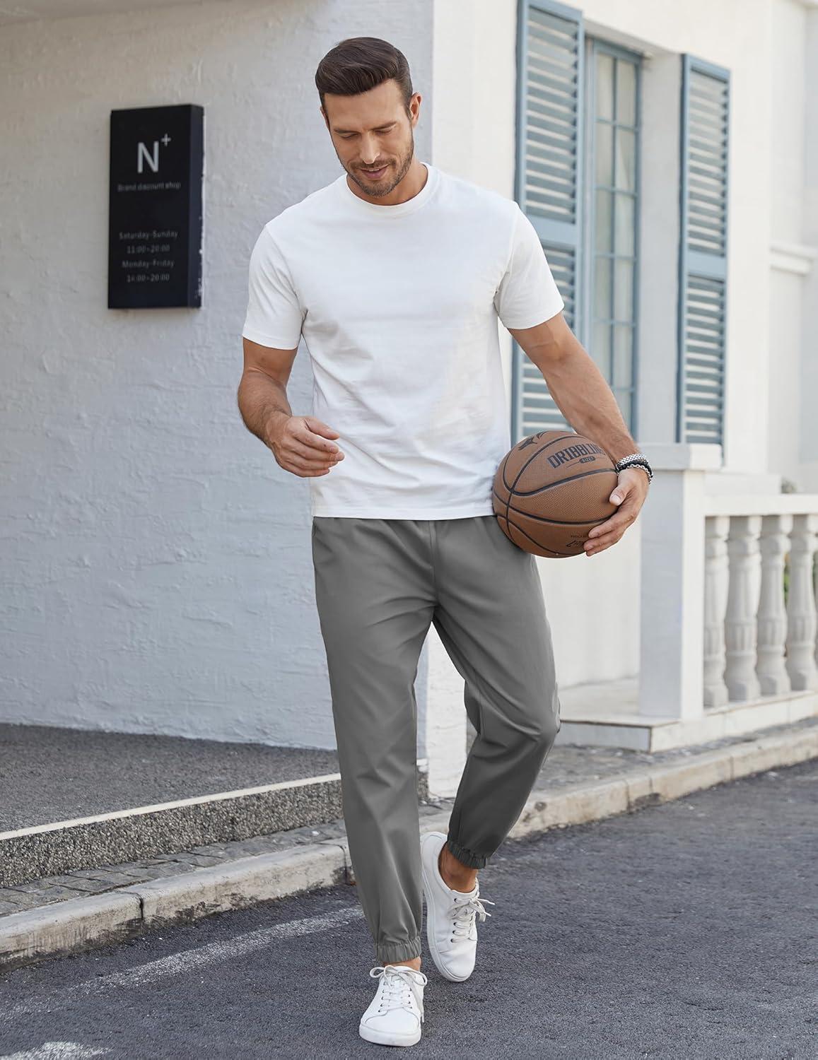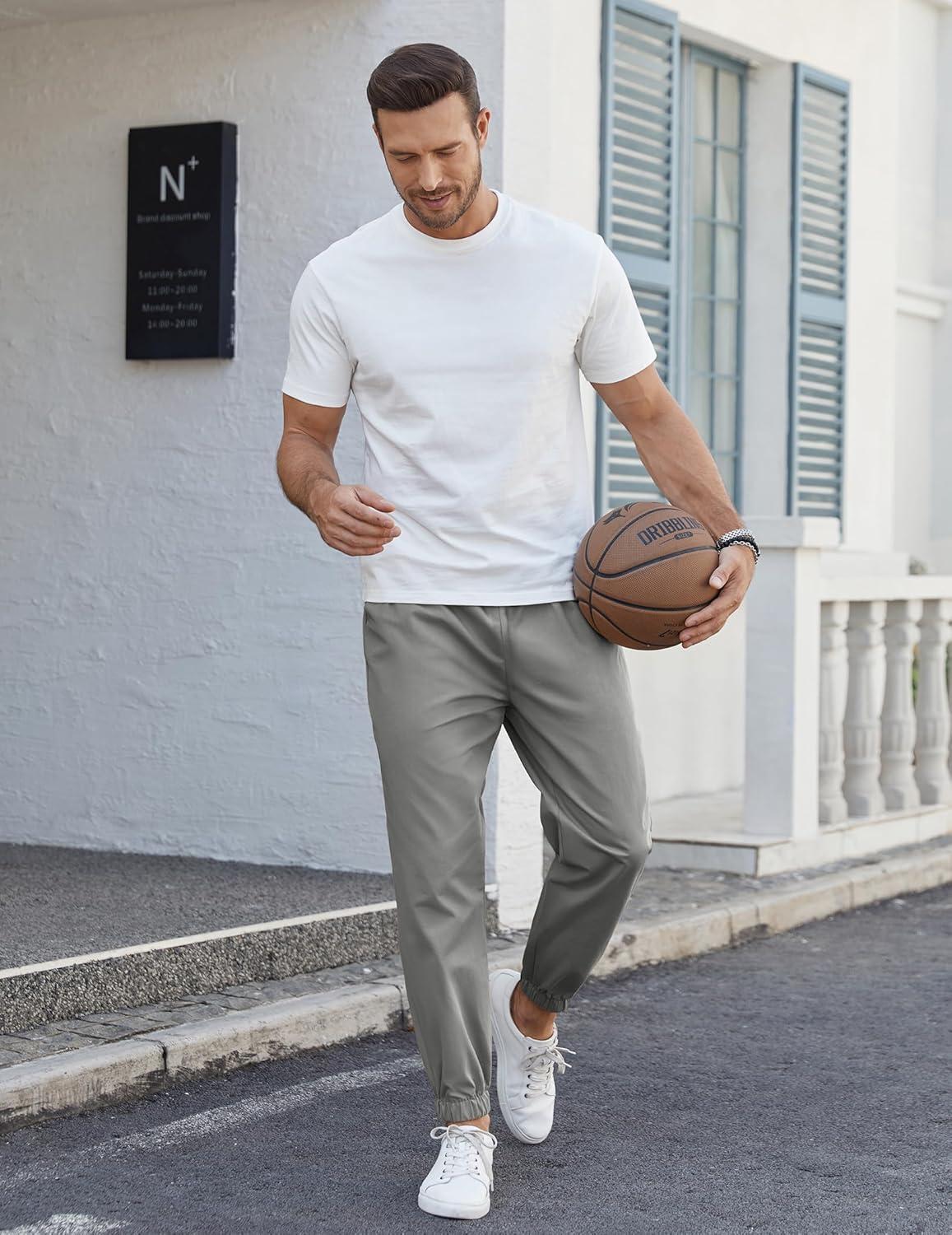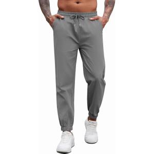 COOFANDY Men’s Casual Joggers Pants Cotton Elastic Waist Drawstring Chino Pants Hiking Outdoor Track Sweatpants(Light Grey)