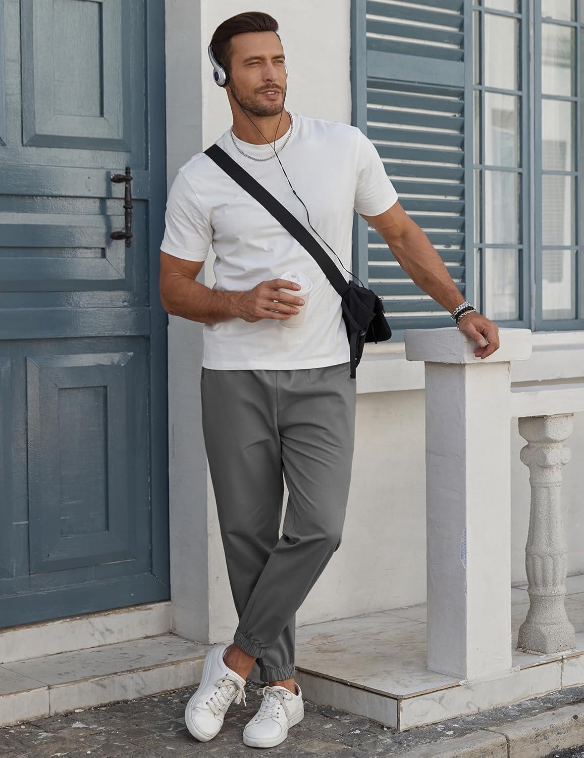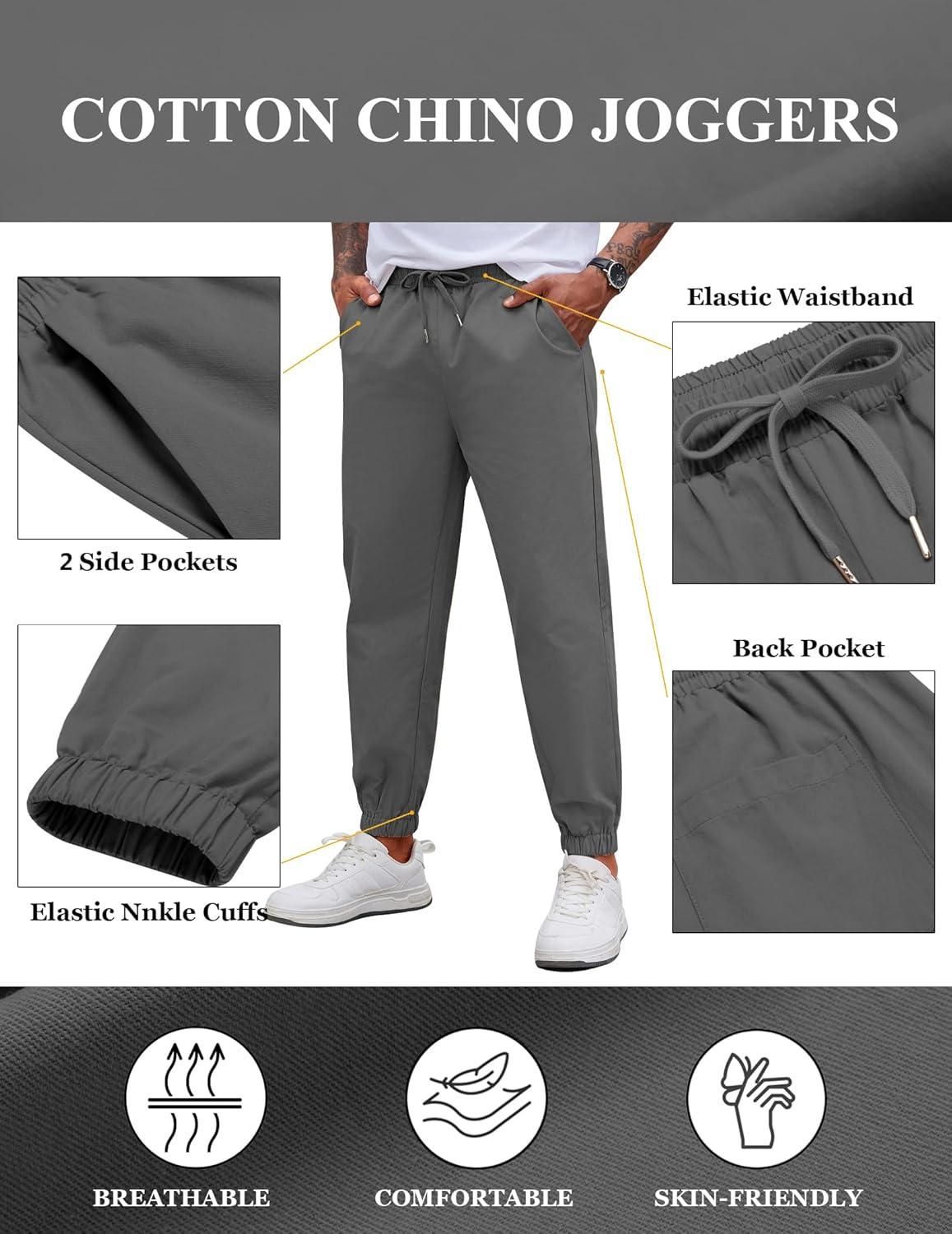 COOFANDY Men’s Casual Joggers Pants Cotton Elastic Waist Drawstring Chino Pants Hiking Outdoor Track Sweatpants(Drak Grey)