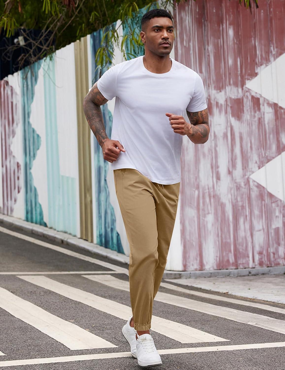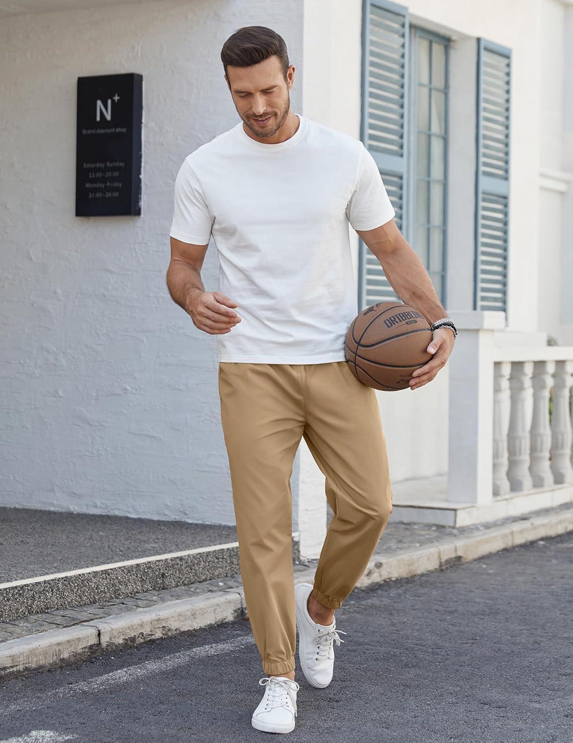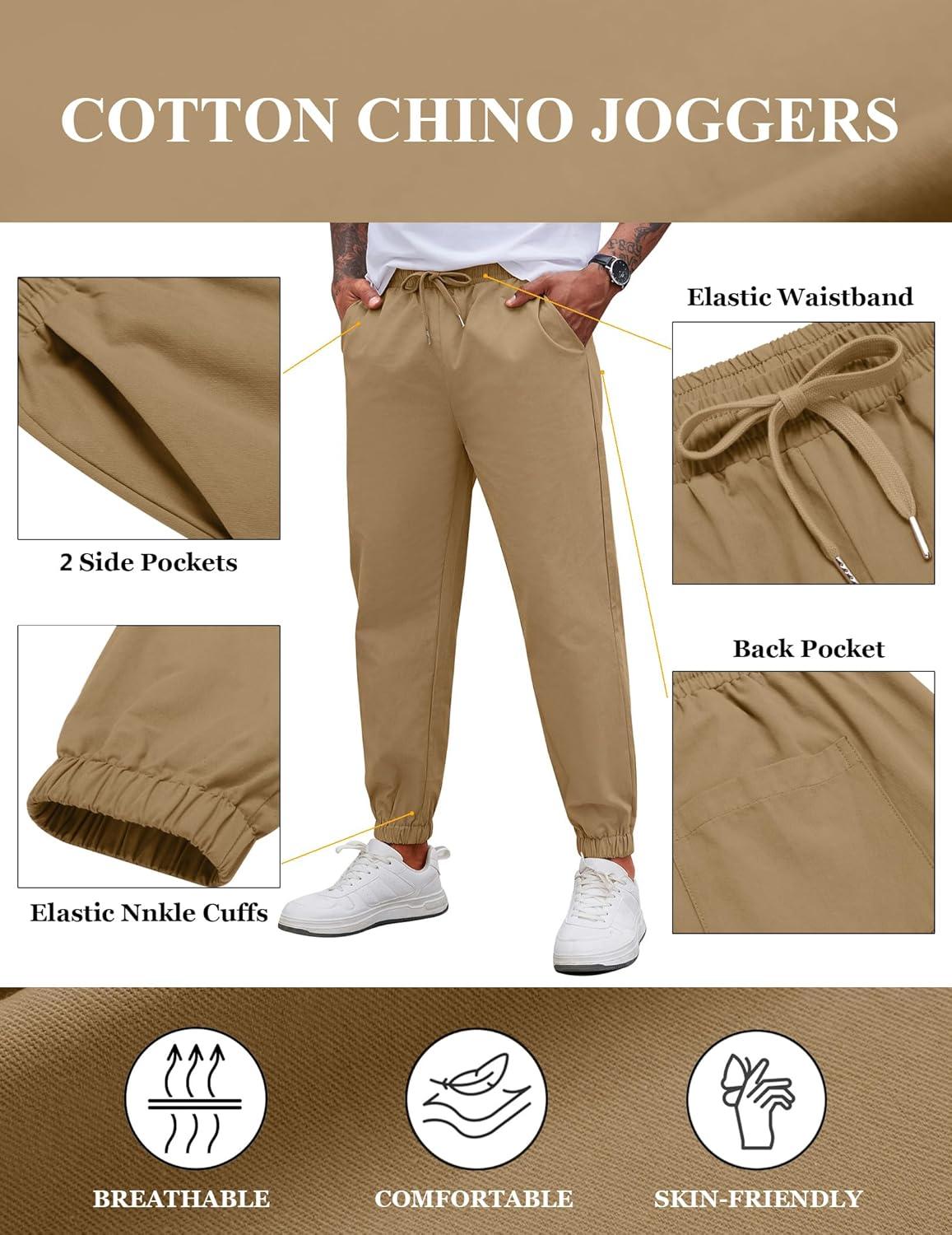 COOFANDY Men’s Casual Joggers Pants Cotton Elastic Waist Drawstring Chino Pants Hiking Outdoor Track Sweatpants(Khaki)