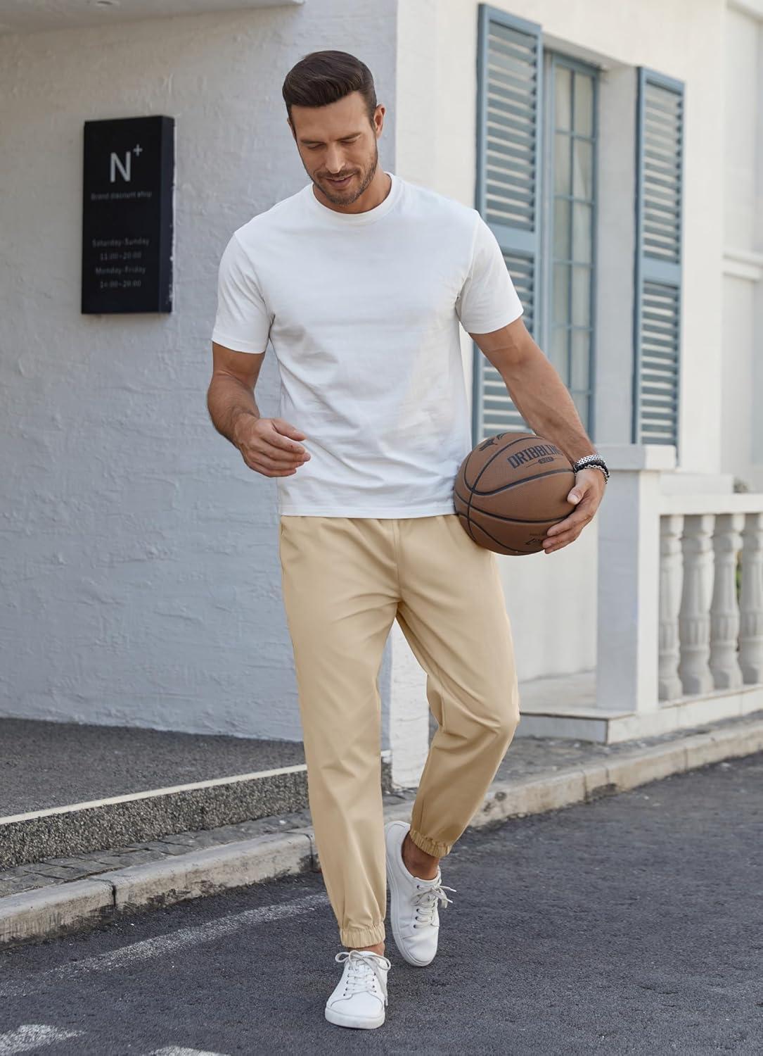 COOFANDY Men’s Casual Joggers Pants Cotton Elastic Waist Drawstring Chino Pants Hiking Outdoor Track Sweatpants(Light Khaki)