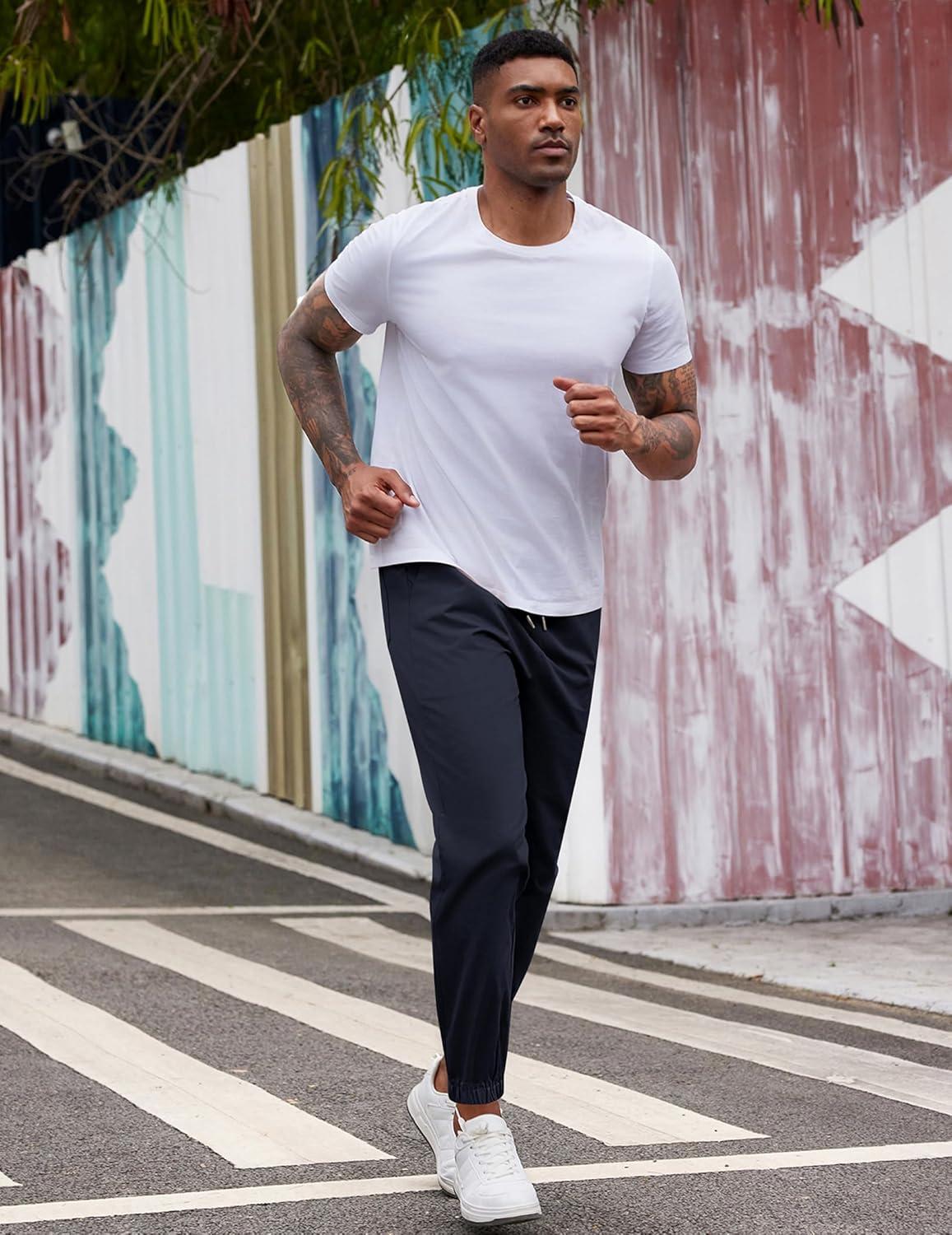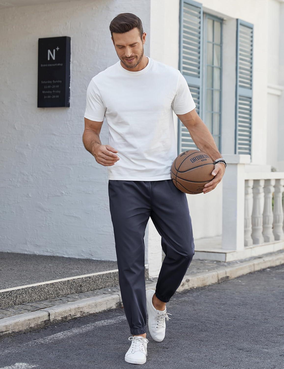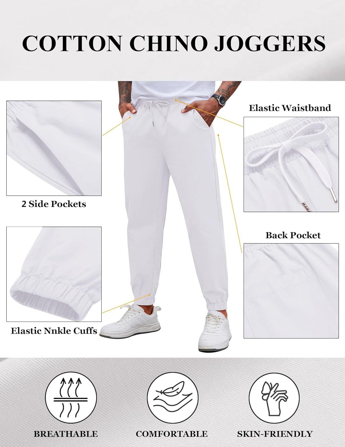 COOFANDY Men’s Casual Joggers Pants Cotton Elastic Waist Drawstring Chino Pants Hiking Outdoor Track Sweatpants(White)