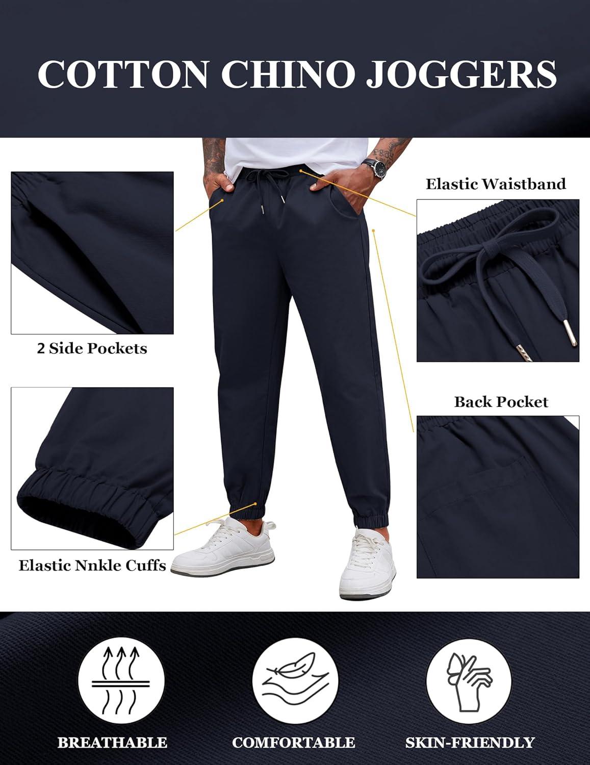 COOFANDY Men’s Casual Joggers Pants Cotton Elastic Waist Drawstring Chino Pants Hiking Outdoor Track Sweatpants(Navy Blue)