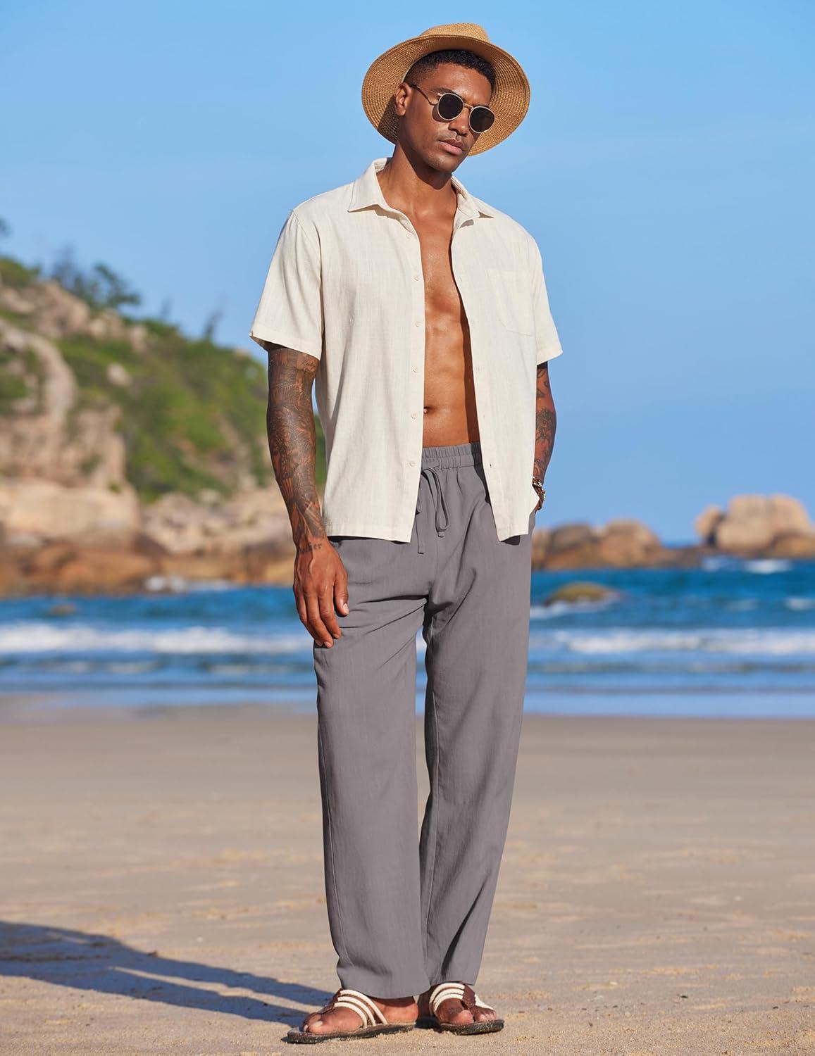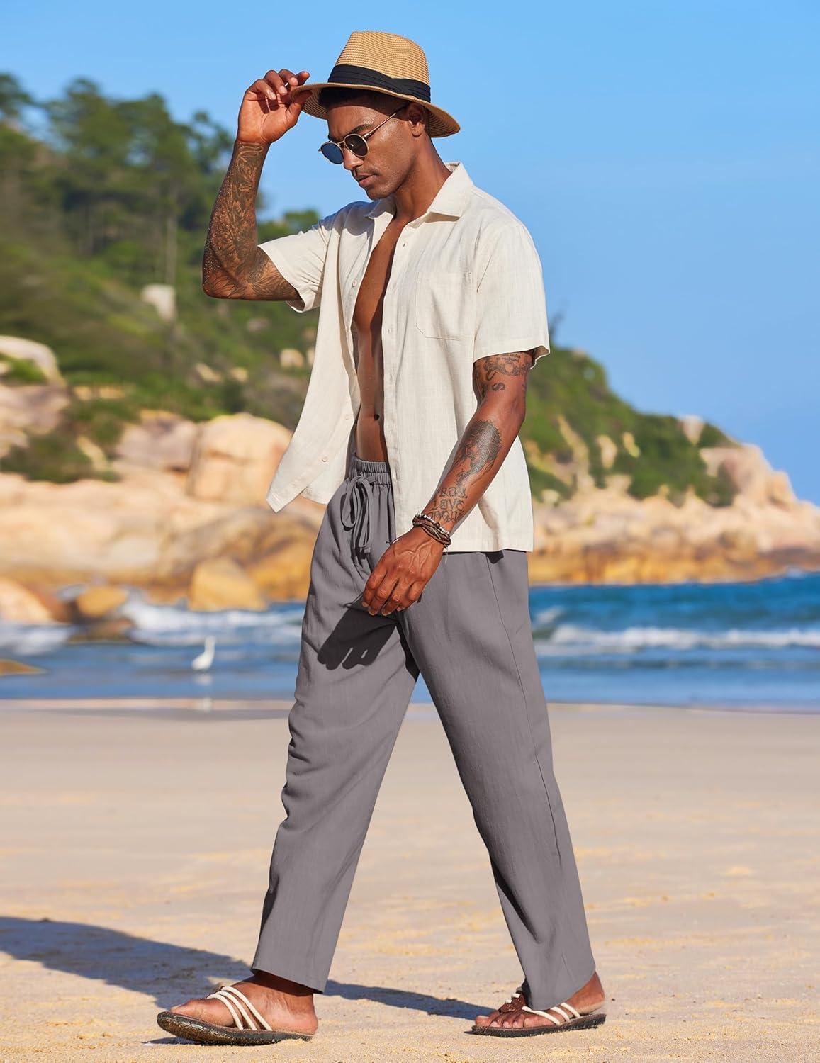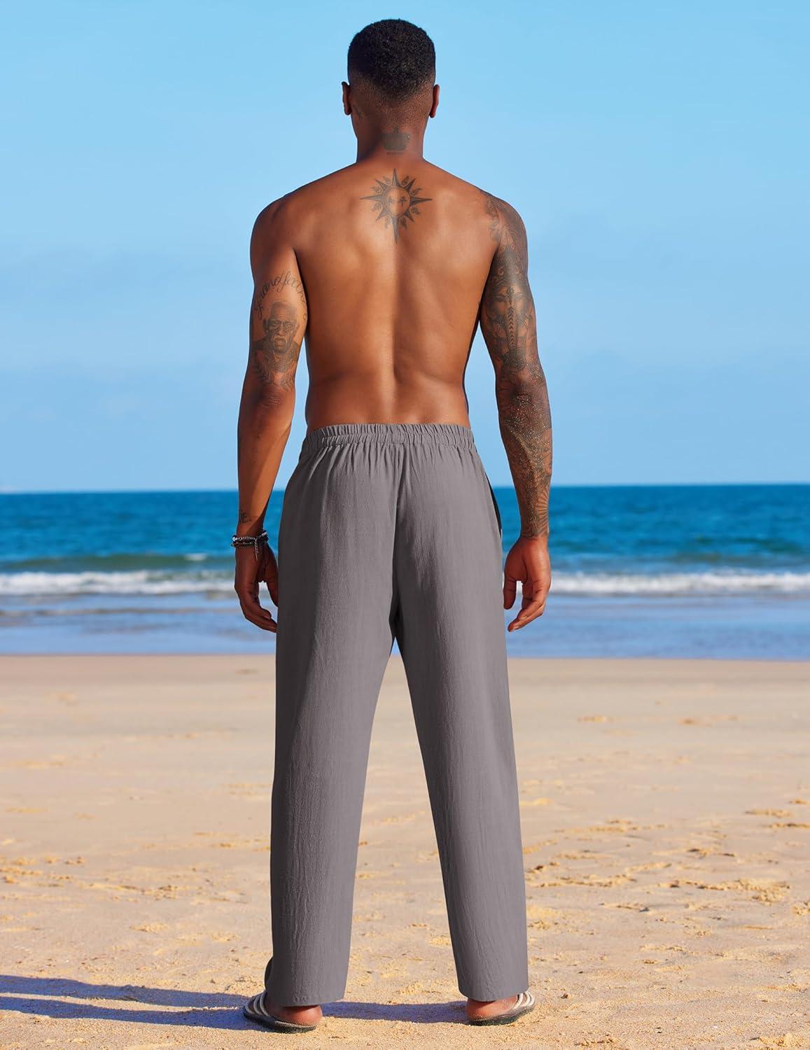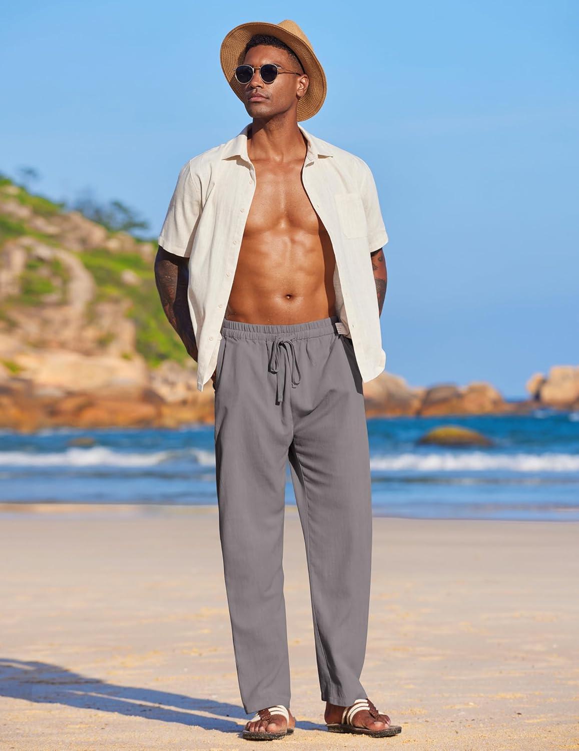 COOFANDY Men’s Casual Linen Summer Beach Pants Lightweight Drawstring Elastic Waist Yoga Trousers(Gray)