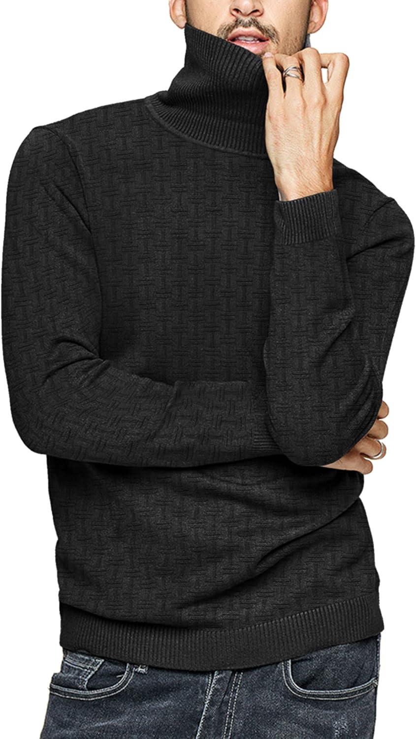 COOFANDY Men’s Slim Fit Turtleneck Sweaters Casual Cable Knitted Soft Pullover Sweaters(A-black)