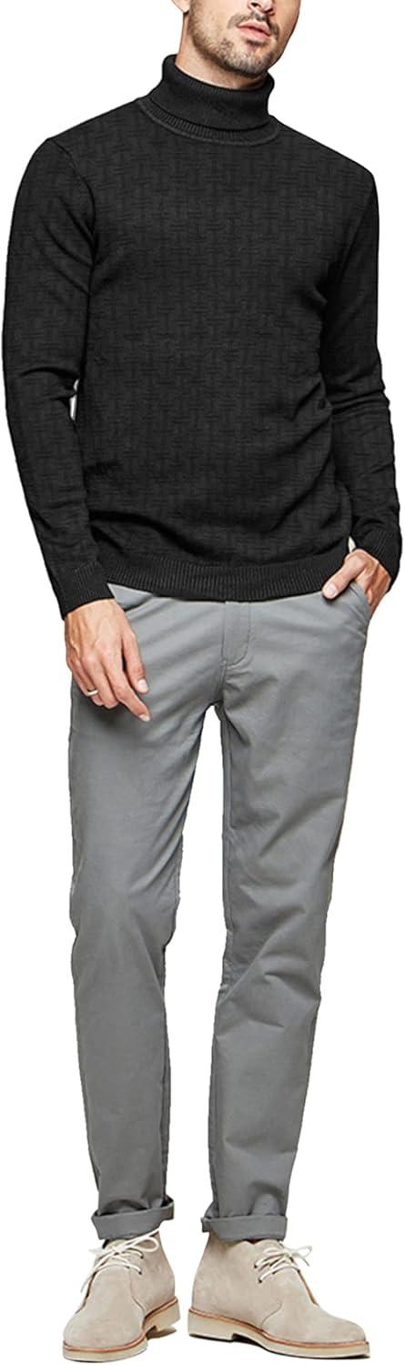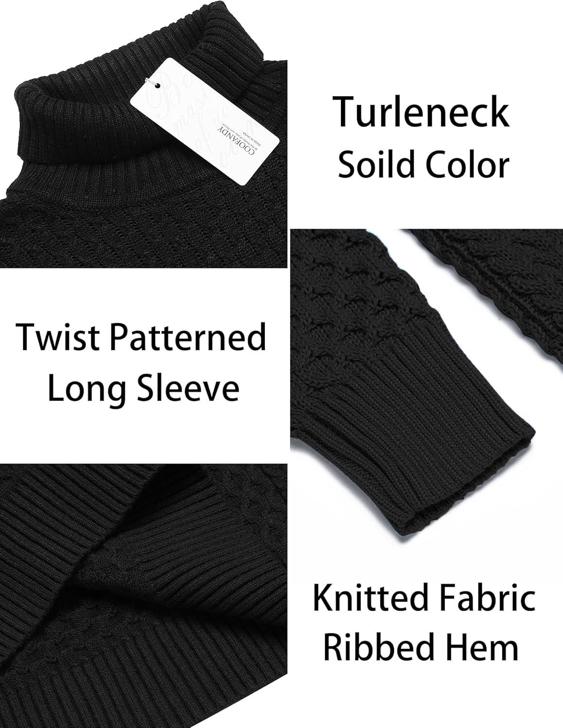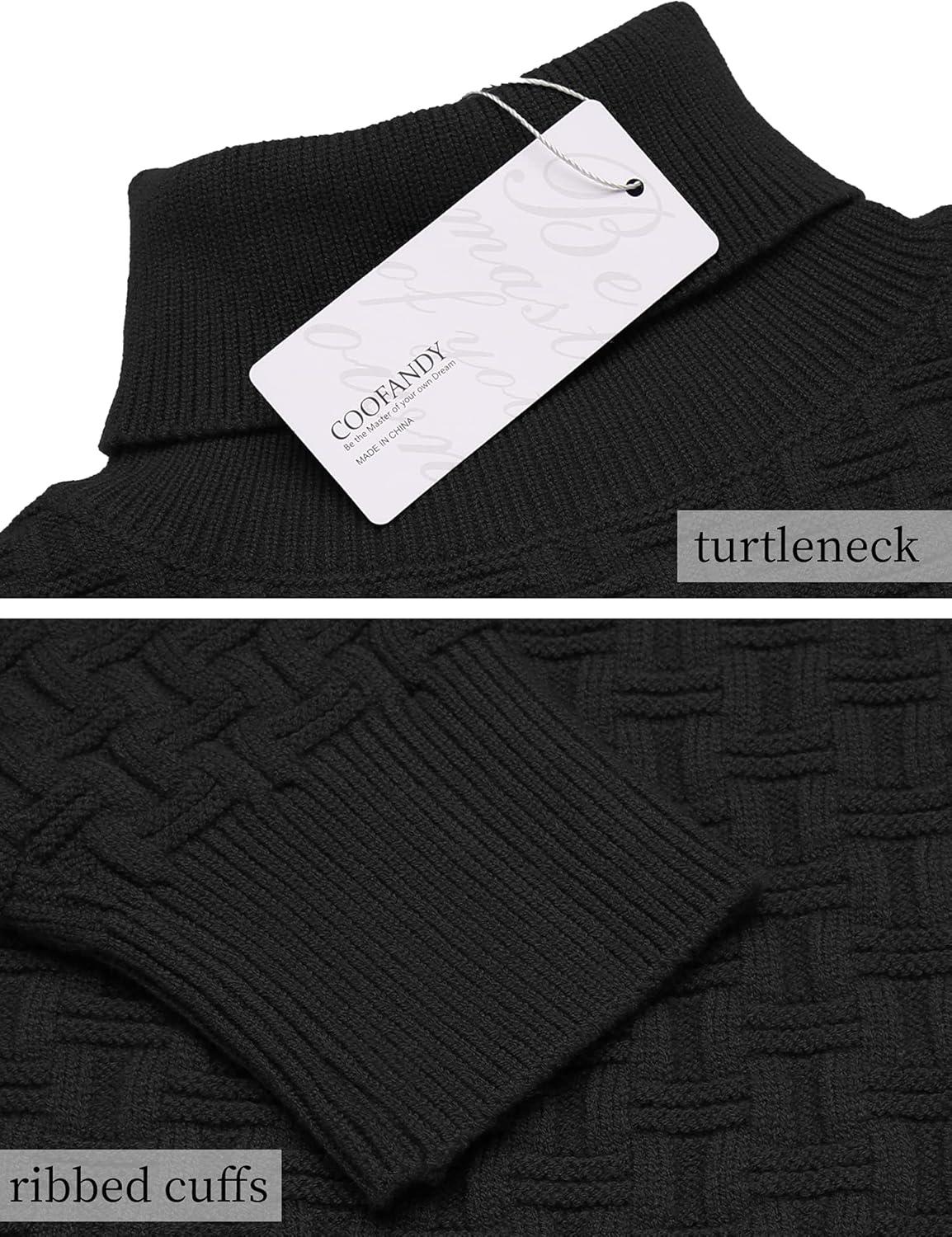 COOFANDY Men’s Slim Fit Turtleneck Sweaters Casual Cable Knitted Soft Pullover Sweaters(01-black)