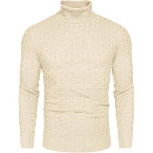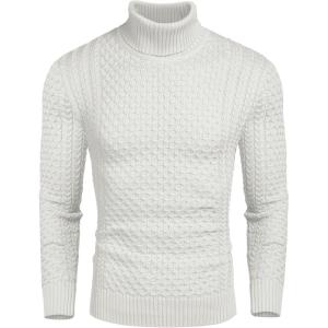 COOFANDY Men’s Slim Fit Turtleneck Sweaters Casual Cable Knitted Soft Pullover Sweaters(01-white)