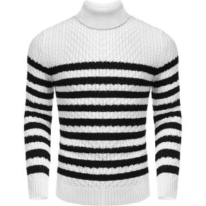 COOFANDY Men’s Slim Fit Turtleneck Sweaters Casual Cable Knitted Soft Pullover Sweaters(Black/White Stripes)