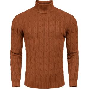 COOFANDY Men’s Slim Fit Turtleneck Sweaters Casual Cable Knitted Soft Pullover Sweaters(Brown)