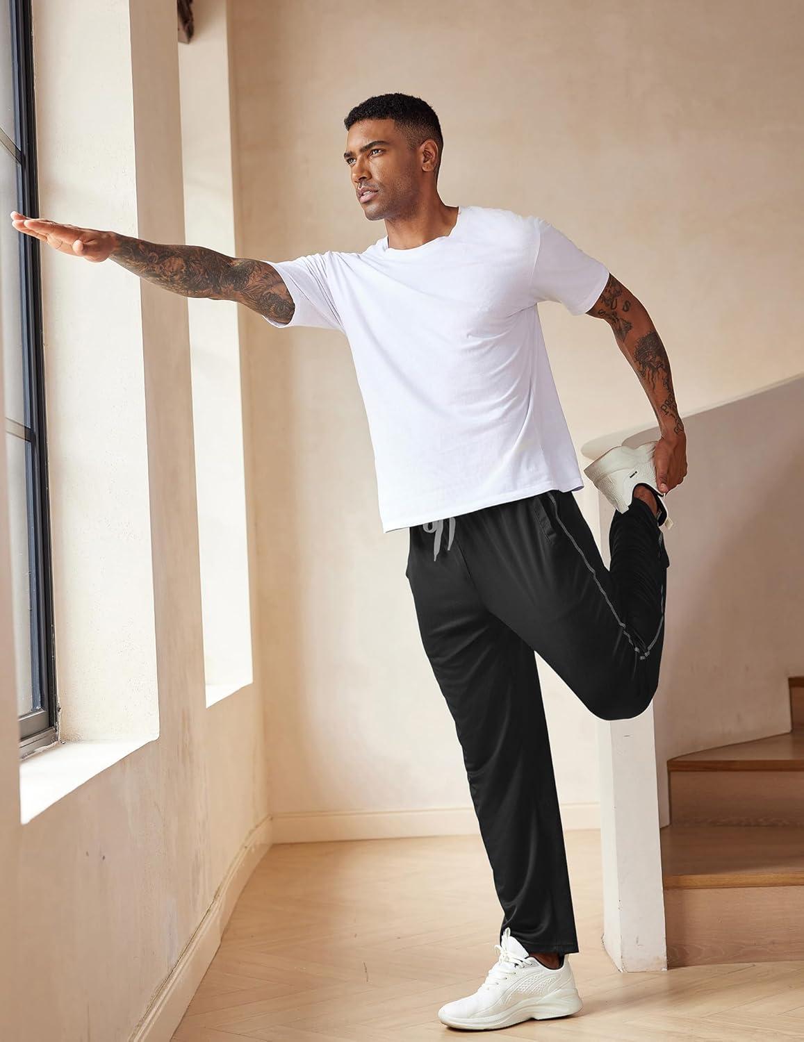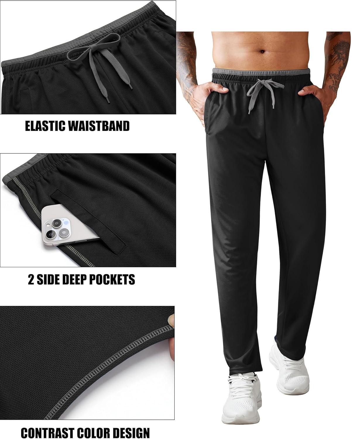 COOFANDY Mens Athletic Workout Pants Open Bottom Sweatpants Mesh Gym Pants for Runnning, Training,Casual(Black)