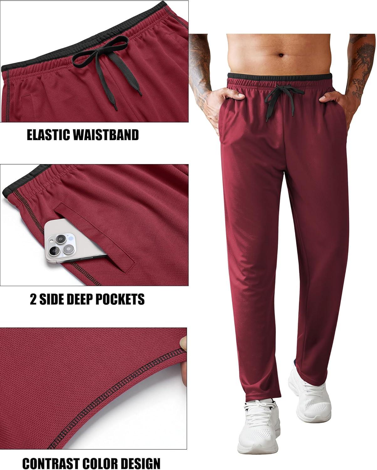 COOFANDY Mens Athletic Workout Pants Open Bottom Sweatpants Mesh Gym Pants for Runnning, Training,Casual(Black/Red)