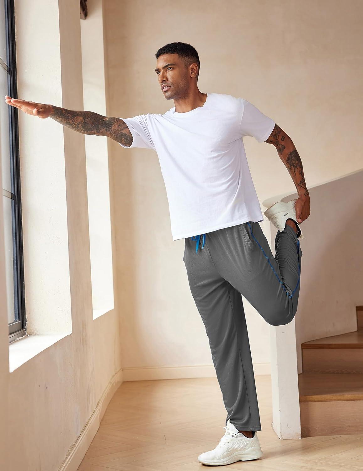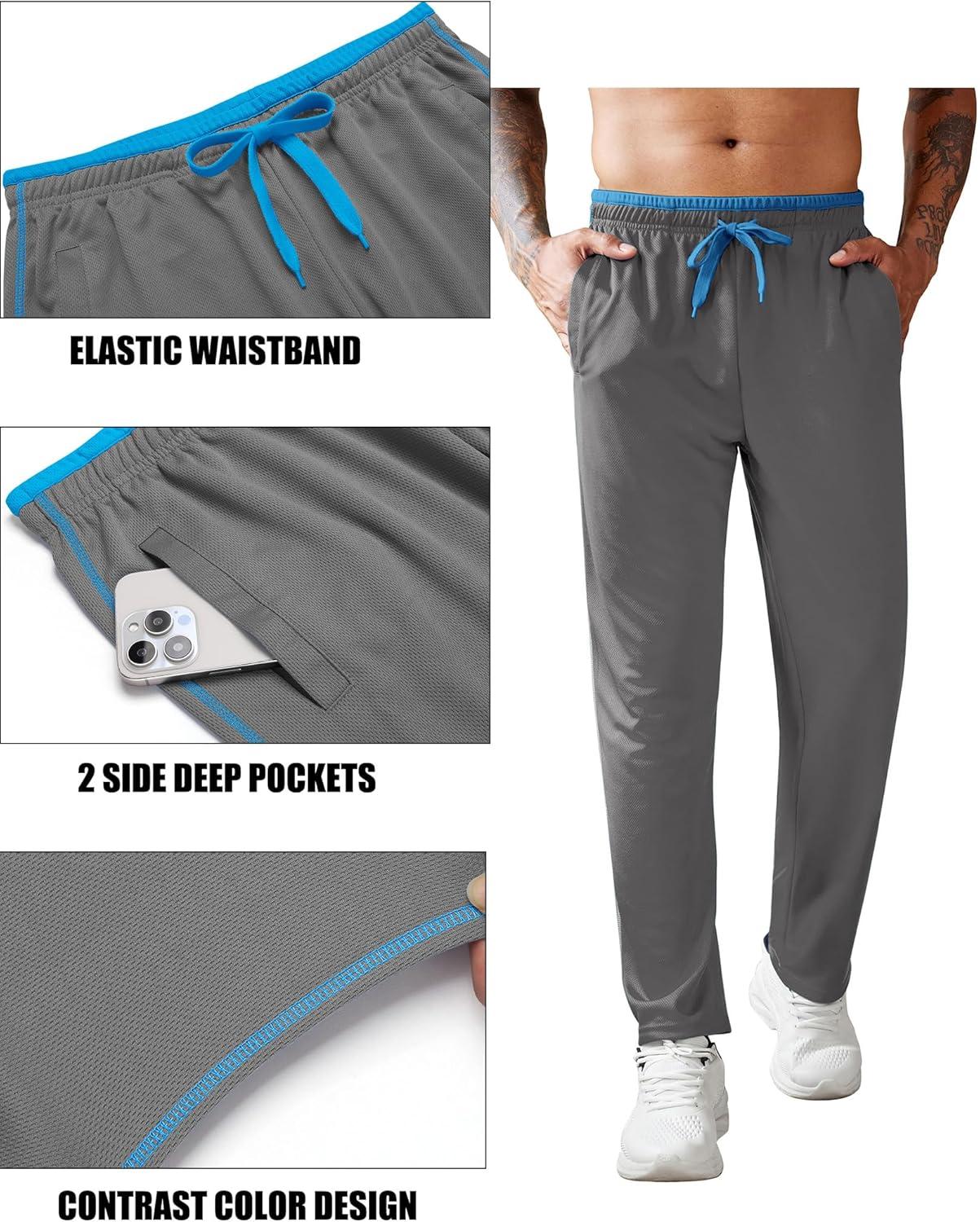 COOFANDY Mens Athletic Workout Pants Open Bottom Sweatpants Mesh Gym Pants for Runnning, Training,Casual(Dark Grey)