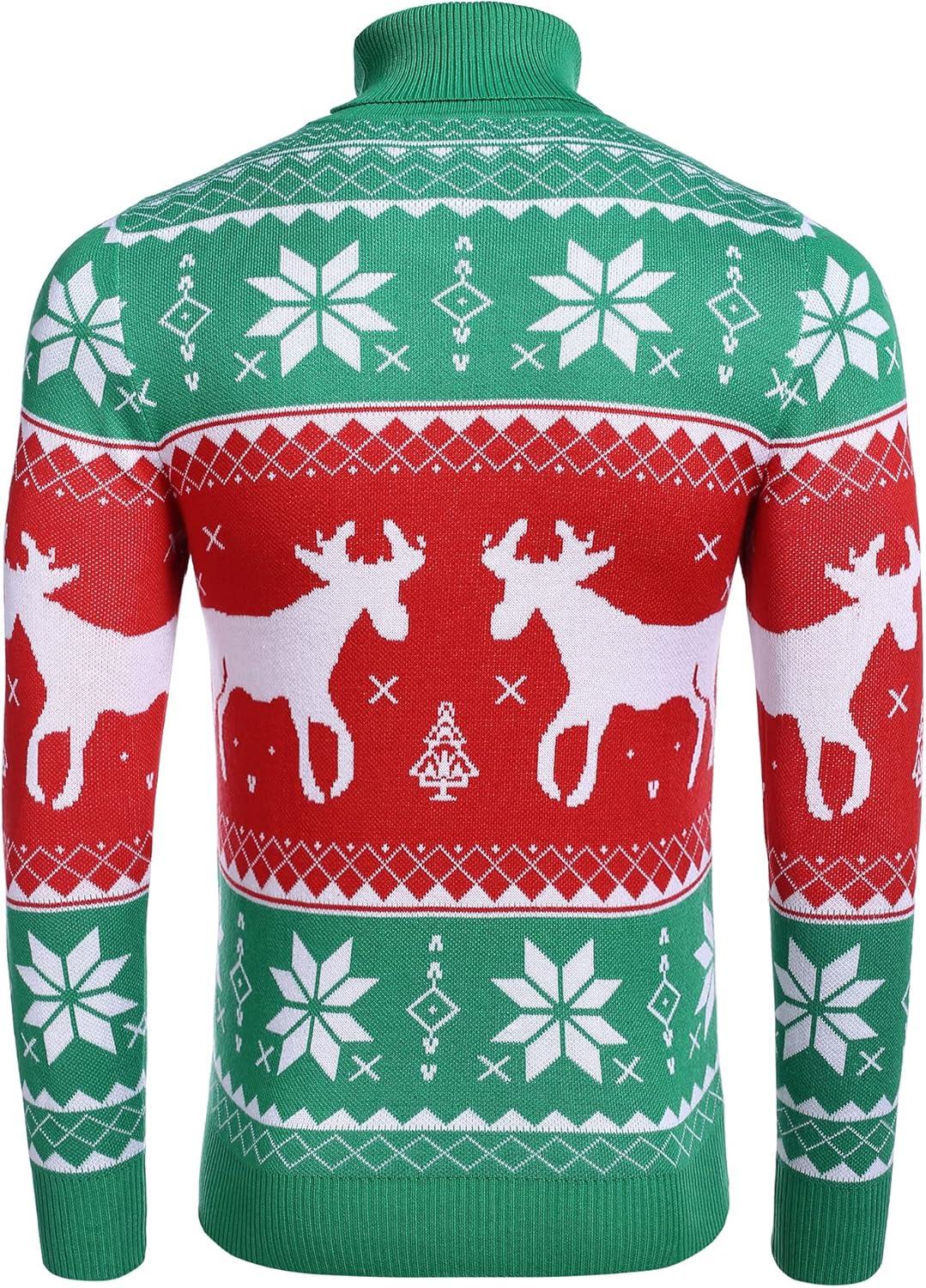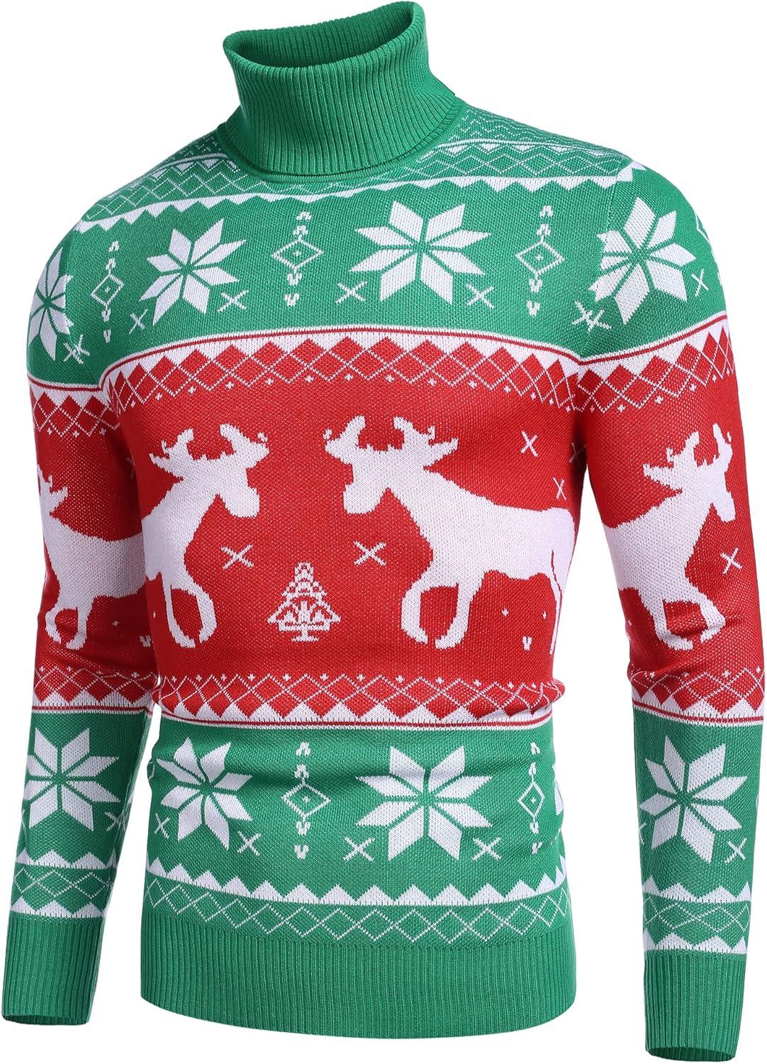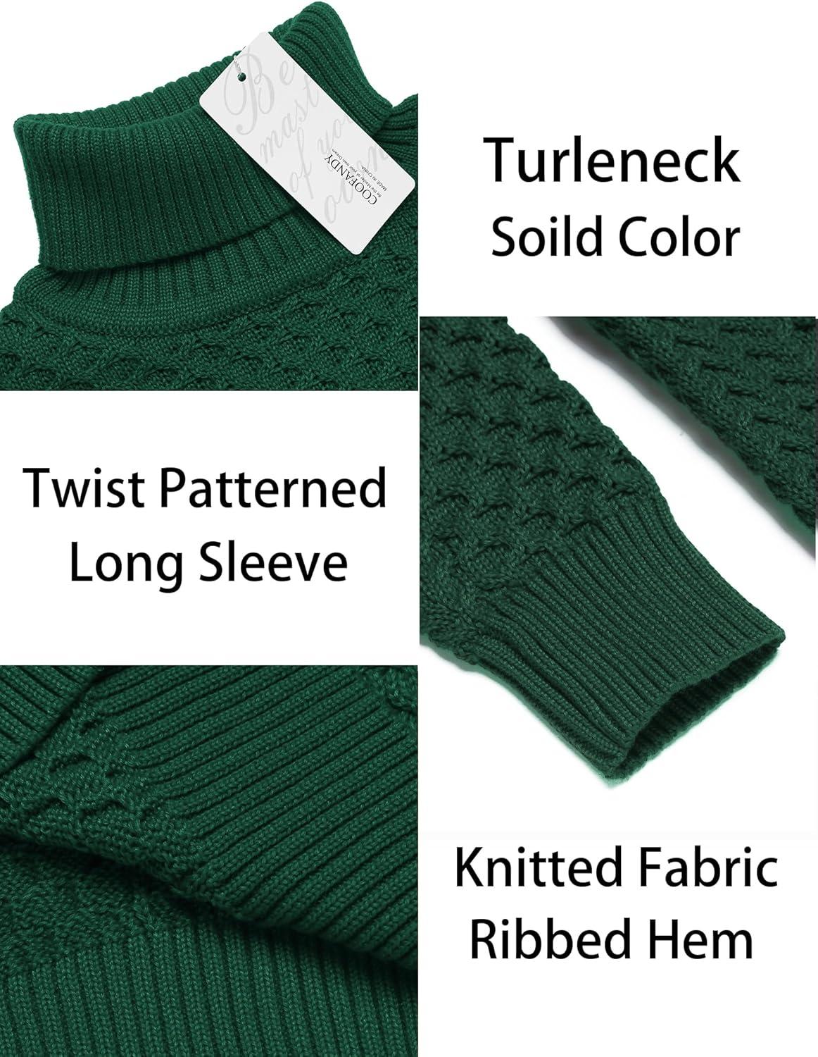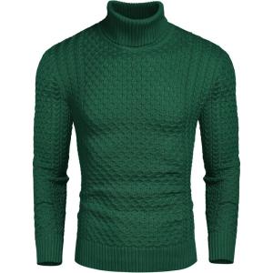 COOFANDY Men’s Slim Fit Turtleneck Sweaters Casual Cable Knitted Soft Pullover Sweaters(Christmas Green)