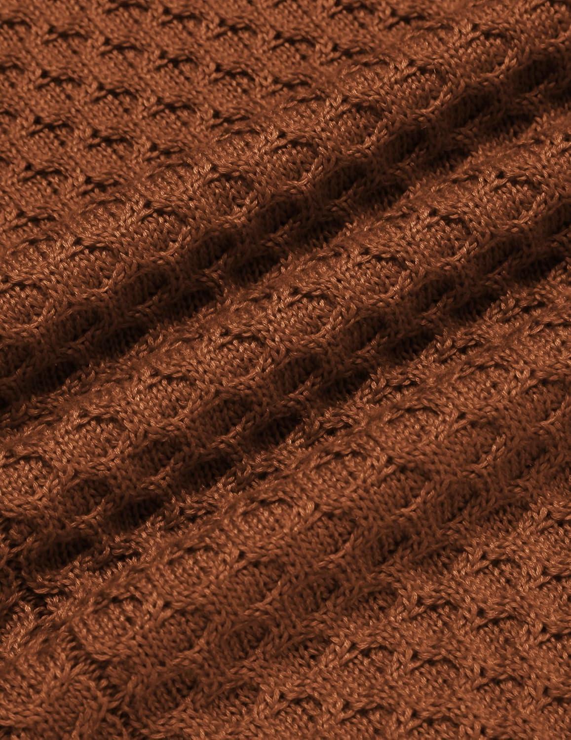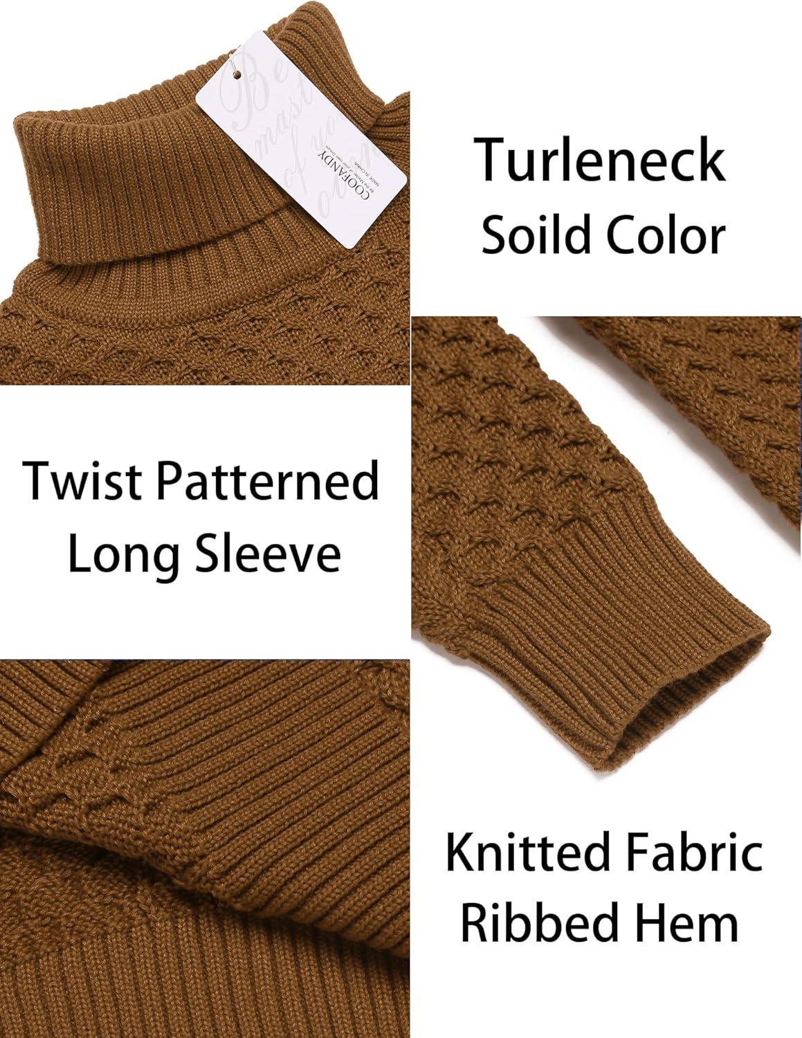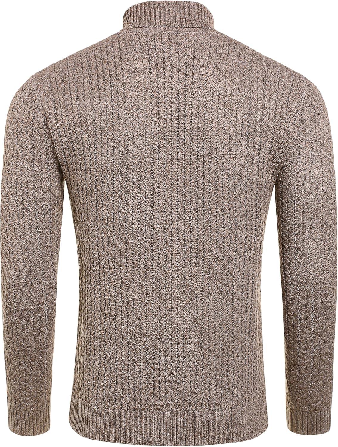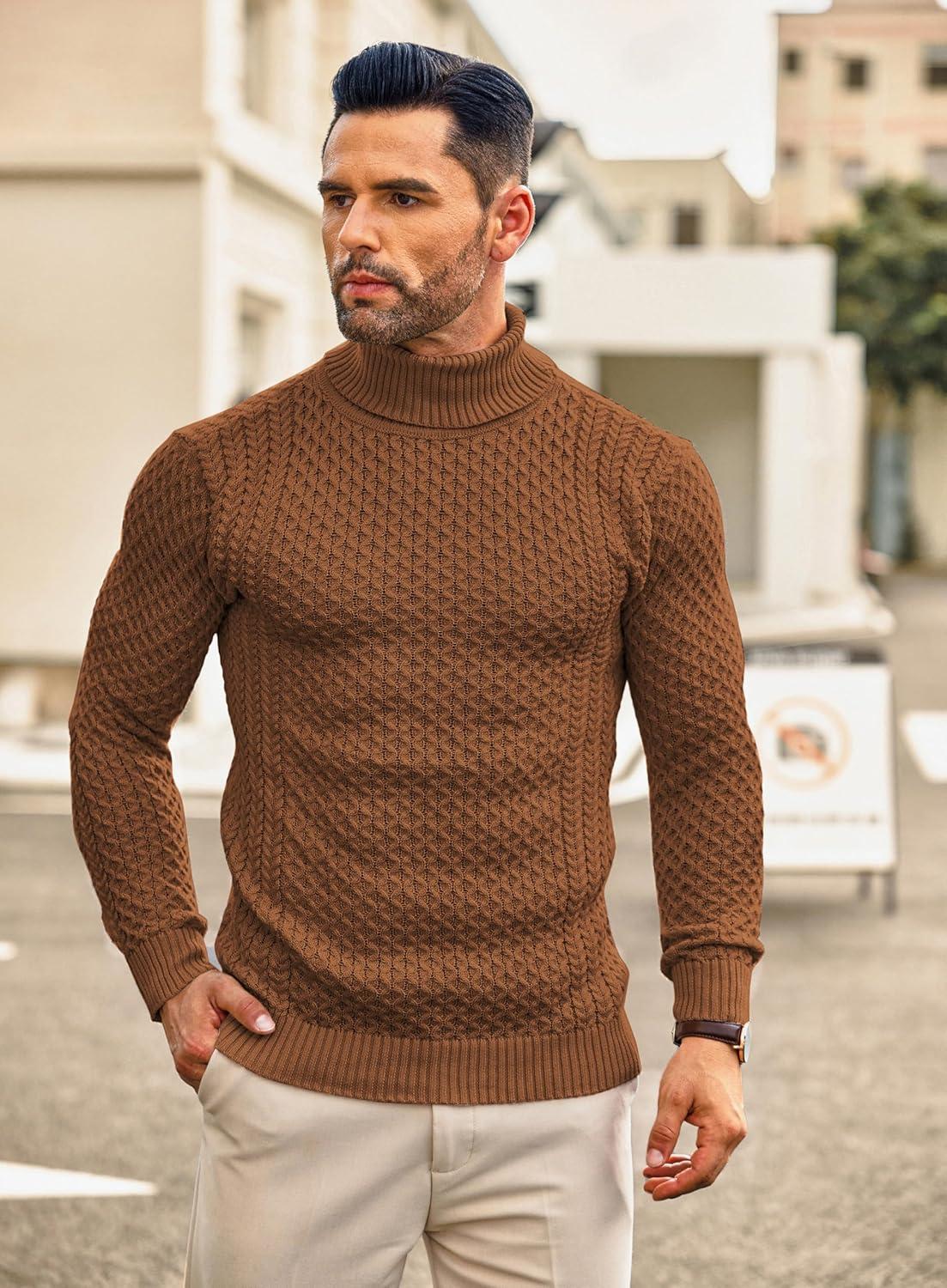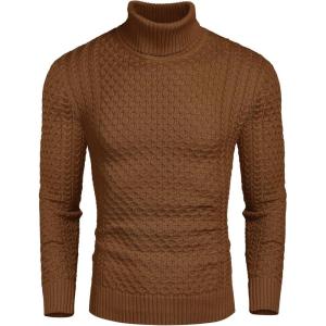 COOFANDY Men’s Slim Fit Turtleneck Sweaters Casual Cable Knitted Soft Pullover Sweaters(Colorful Brown)