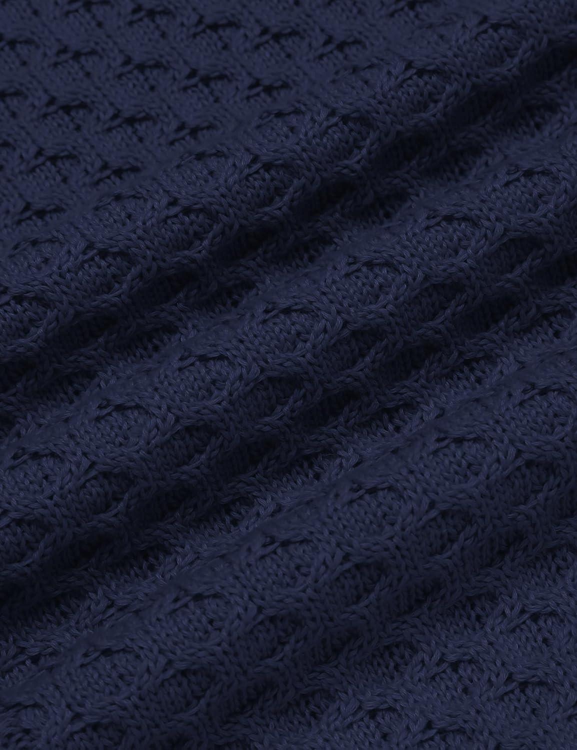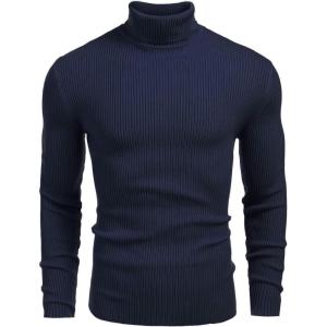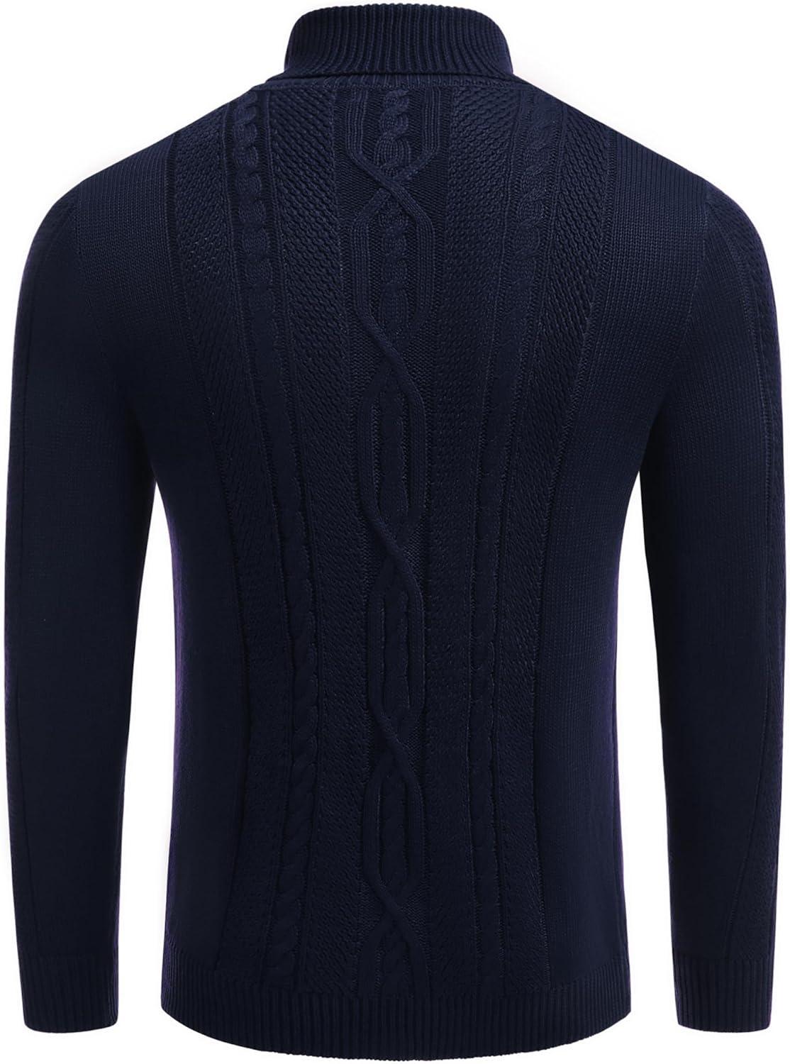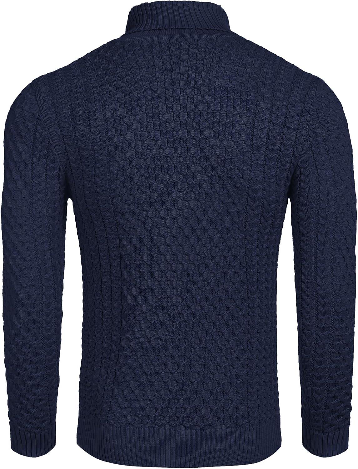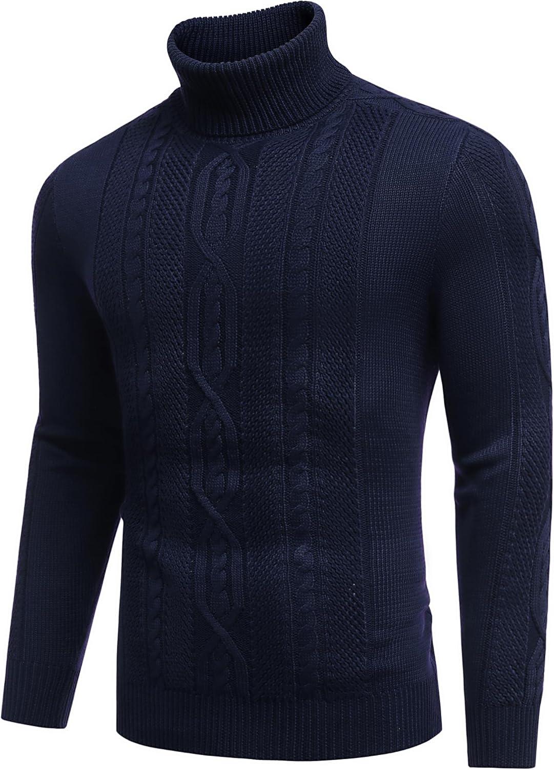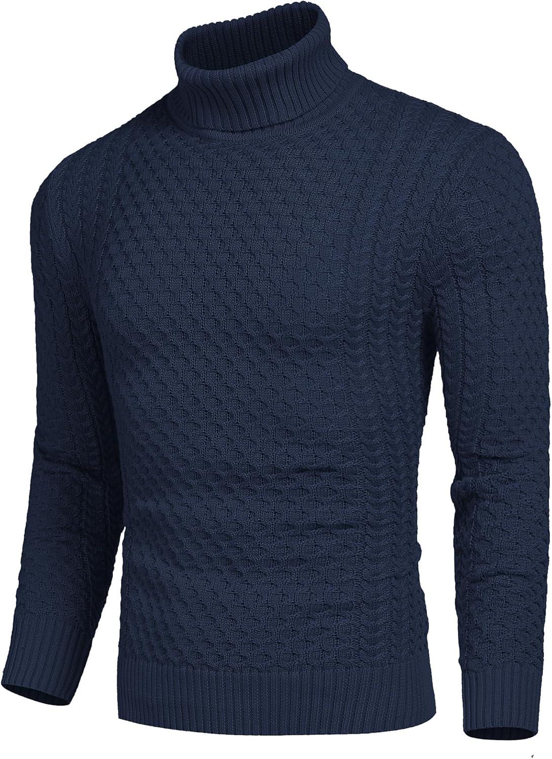 COOFANDY Men’s Slim Fit Turtleneck Sweaters Casual Cable Knitted Soft Pullover Sweaters(Navy Blue)