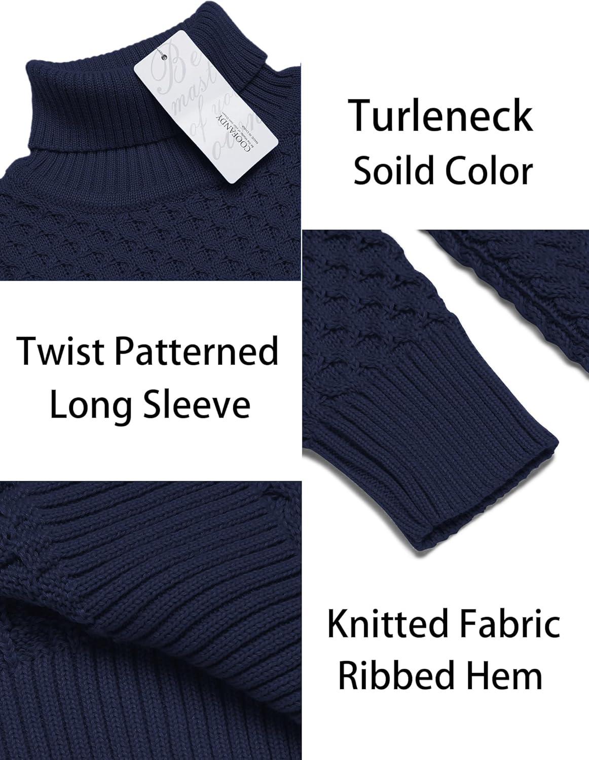 COOFANDY Men’s Slim Fit Turtleneck Sweaters Casual Cable Knitted Soft Pullover Sweaters(Dark Blue)