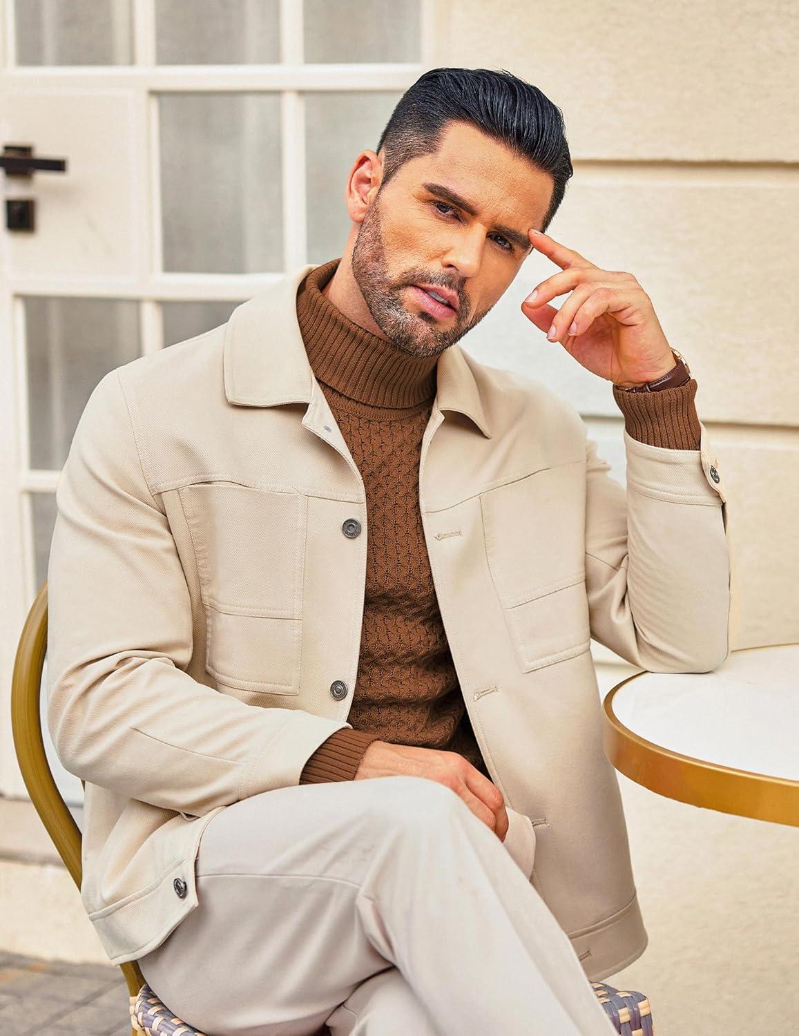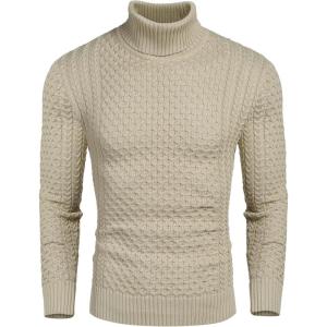 COOFANDY Men’s Slim Fit Turtleneck Sweaters Casual Cable Knitted Soft Pullover Sweaters(Khaki)