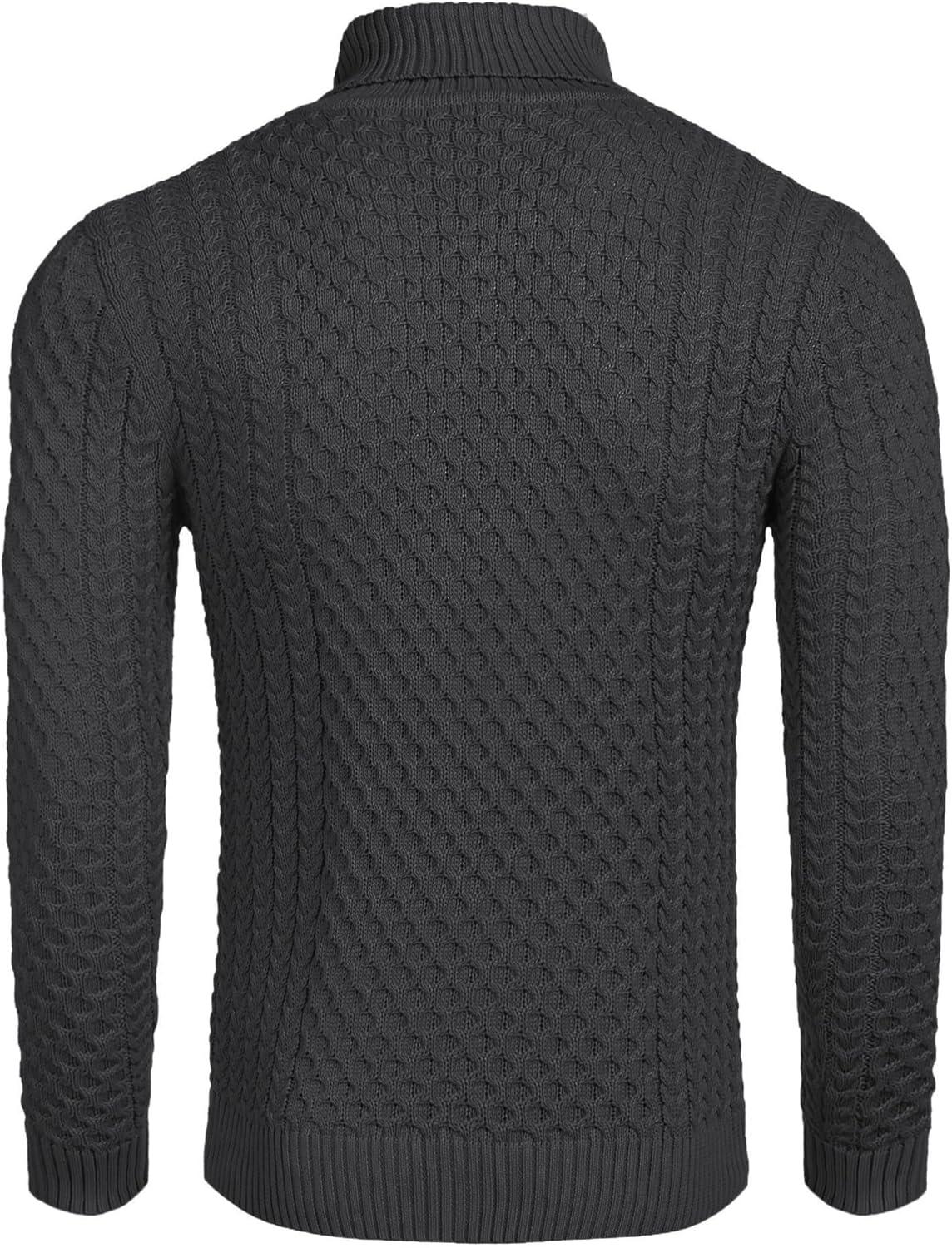 COOFANDY Men’s Slim Fit Turtleneck Sweaters Casual Cable Knitted Soft Pullover Sweaters(Dark Gray)